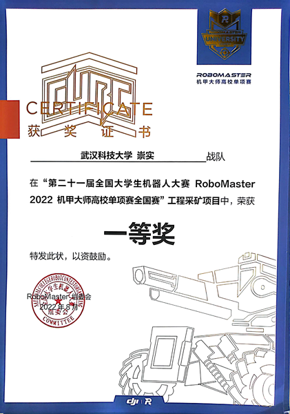 崇实战队由信息学院本科生和研究生共同组成,分为机械组、电控组和算法组。战队自2020年成立以来多次获得奖项,今年获2022RoboMaster机甲大师高校人工智能挑战赛国际赛二等奖、2022年全国大学生机器人大赛RoboMaster大赛机甲大师赛东部赛区域冠军、2022年全国大学生机器人大赛RoboMaster机甲大师赛工程采矿项目一等奖。