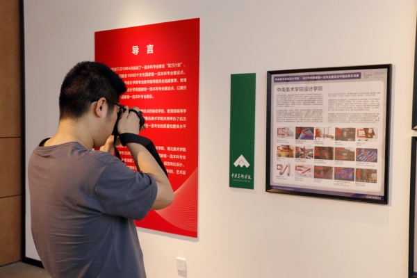 中央美术学院现有16个国家级一流本科专业。此次展出的有视觉传达、产品设计、艺术与科技、数字媒体艺术、服装与服饰设计、摄影6个专业的建设情况。每个专业从专业方向、课程简介、课程内容、课程目标、课程实践、学生作品等,图文并茂地展示建设成果。