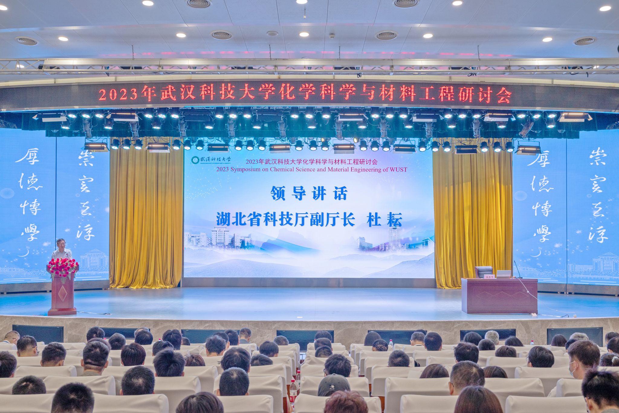 武科大网讯(通讯员 玛依努尔)5月20日,2023年yabo鸭脖官网化学科学与材料工程研讨会在鸭脖青山校区碧园会堂召开,大会由化学与化工学院、资源与环境工程学院共同承办。鸭脖党委书记徐雁冰、校长倪红卫、副校长马腾,湖北省科技厅副厅长杜耘,国内外百余名知名院士专家学者出席开幕式。开幕式由马腾主持。
