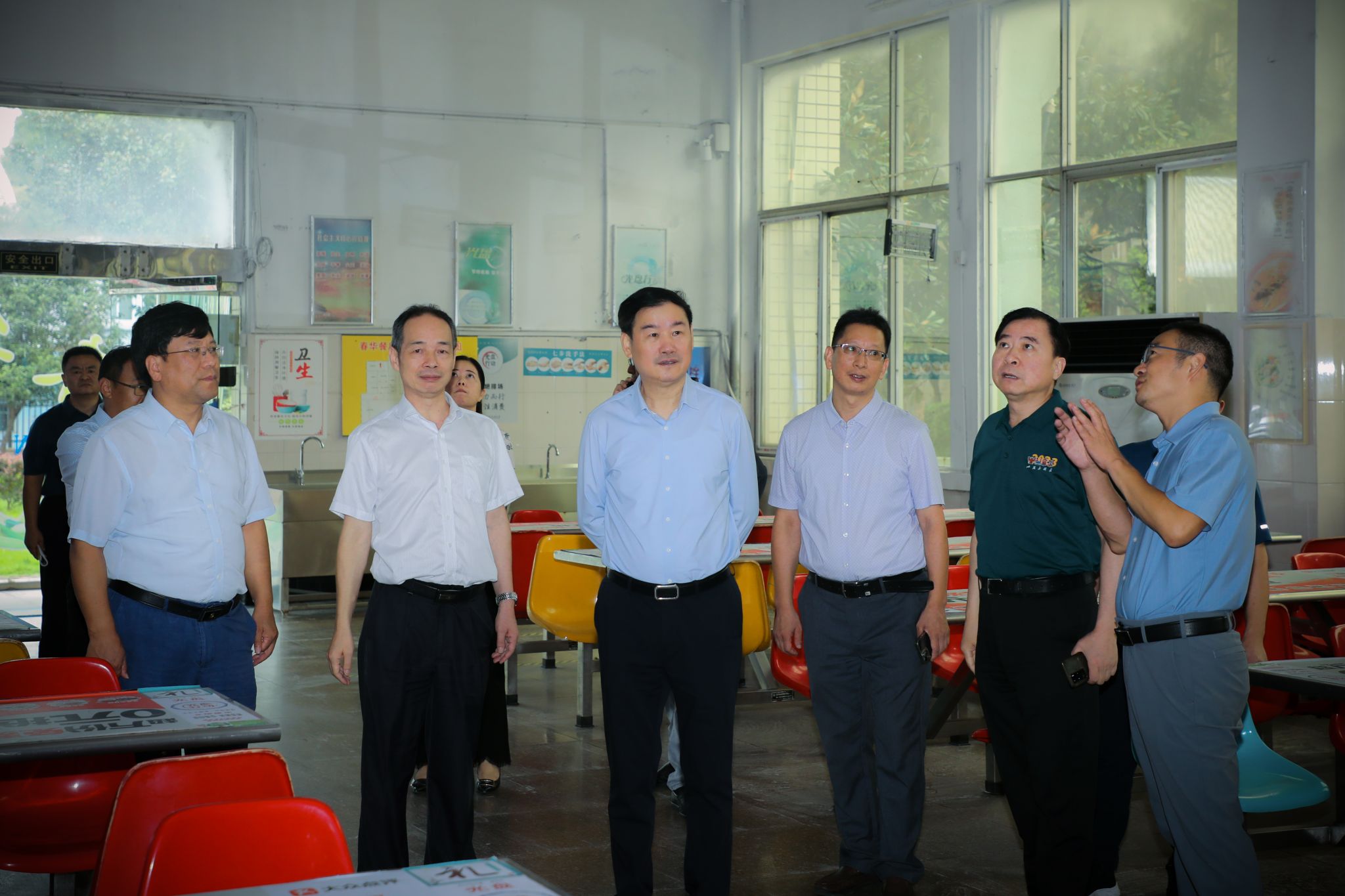 校领导一行先后来到青山校区西院小树林广场、室外运动场、人行天桥建设项目、春华餐厅、人和学生公寓,详细了解各单位暑期工作的开展情况和开学准备工作的筹备事宜,就校园环境改造、教学条件保障、生活后勤保障、校园安全保卫、食品卫生安全等情况进行检查,并看望了从黄家湖校区搬迁至青山校区的学生。