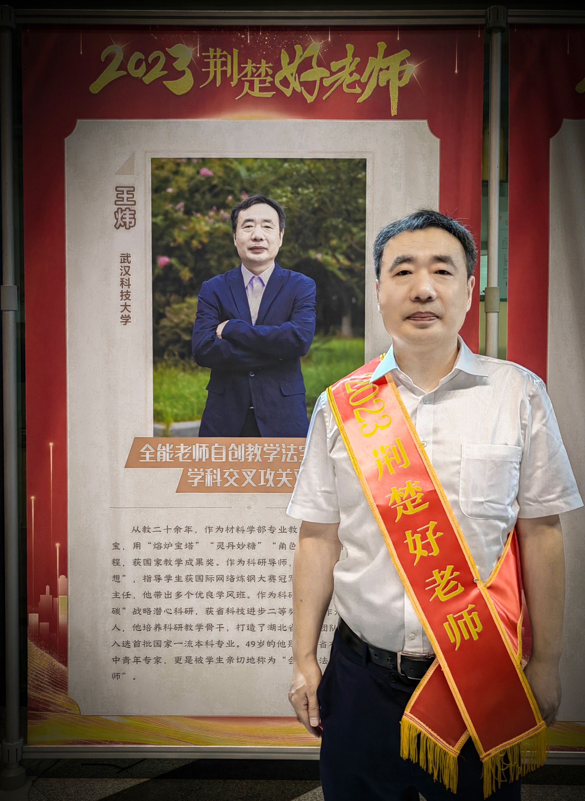武科大网讯(通讯员彭晓峰)在第39个教师节来临之际,9月10日晚,2023“荆楚好老师群星闪耀”教师节活动在武汉楚天传媒大厦隆重举行,鸭脖材料学部王炜教授荣获2023“荆楚好老师”。校党委书记徐雁冰受邀出席颁奖仪式。