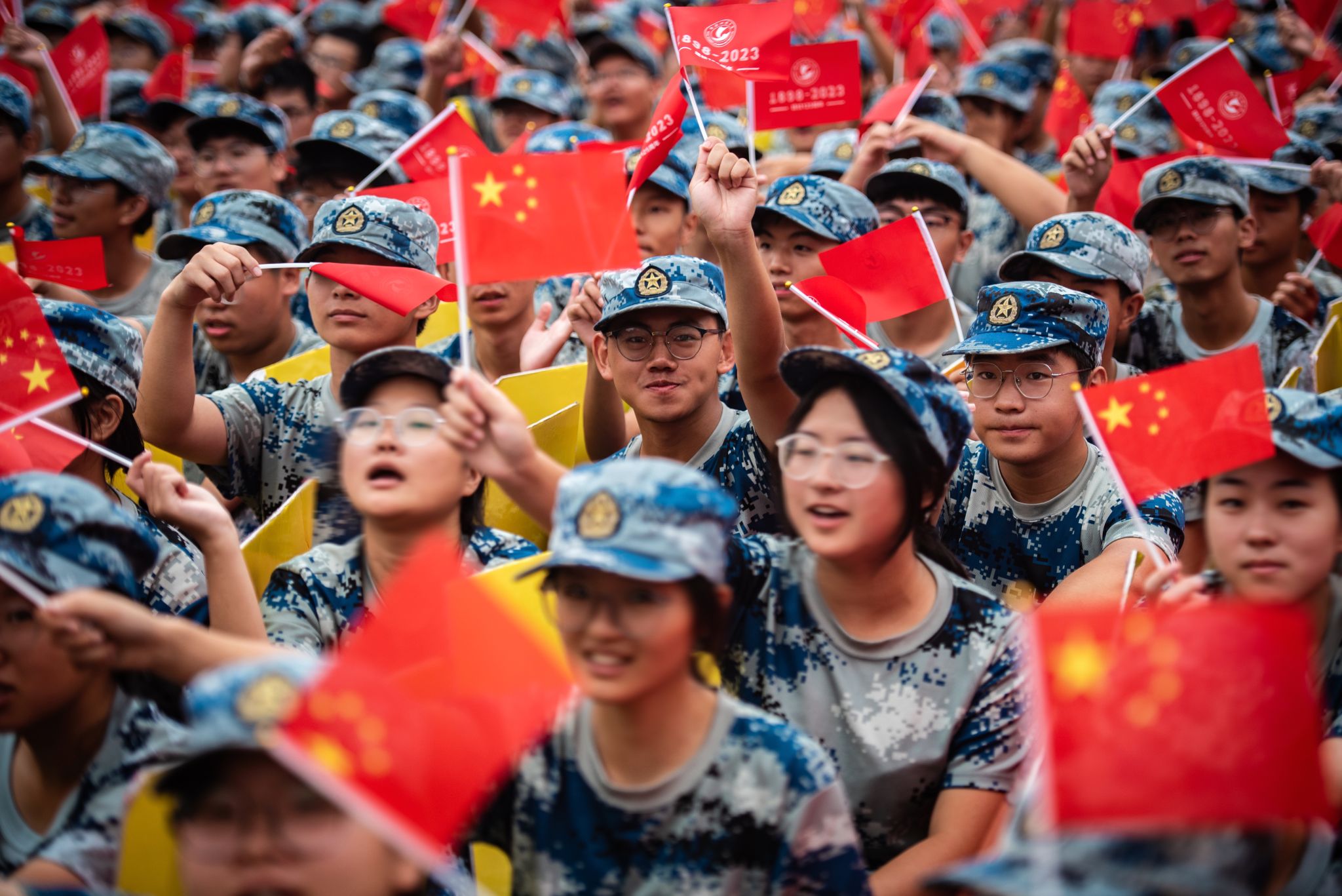 上午8点半,大会在庄严的国歌声中拉开了序幕。6200余名新生们身着迷彩服,高举旗帜,喊着响亮的口号,迈着整齐划一的步伐从主席台前走过,持枪方阵、各连队方阵紧随其后。表演男子擒敌拳的学生们出拳迅速,动作利索。“杀!杀!杀!”标准的动作伴随着响亮的口号,女子匕首操开始上演,武术表演随后登场。教官格斗表演、战场战术表演引起了全场掌声。伴随着数字倒计时结束,摆字方阵迅速调整红、黄纸板,接连摆出“125”“1898-2023”“WUST”等字样,2023级本科生以此献礼学校125周年校庆。