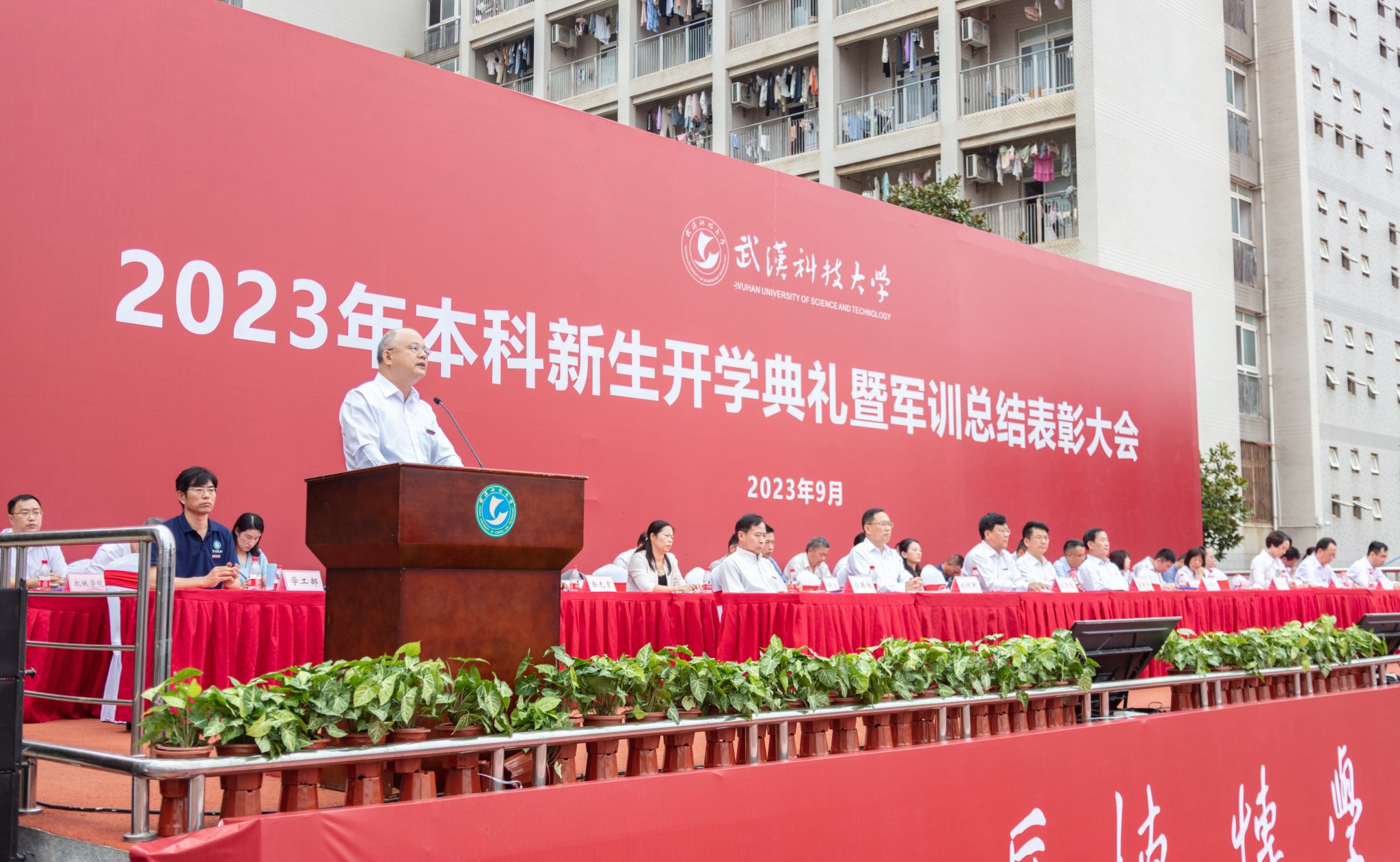 武科大网讯(通讯员宋钦 记者张虎琛 视频王永琦)9月28日上午,黄家湖校区南园操场红旗飘扬,军歌嘹亮,喊声震天。鸭脖2023年本科新生开学典礼暨军训总结表彰大会在这里隆重举行。校党委书记徐雁冰、校长倪红卫,党委副书记孙国胜、盛建龙,党委常委、纪委书记窦先萍,副校长沈季伟、马腾,党委常委刘时新、胡剑以及学校各职能部门、各学院领导在主席台就坐。孙国胜主持大会。