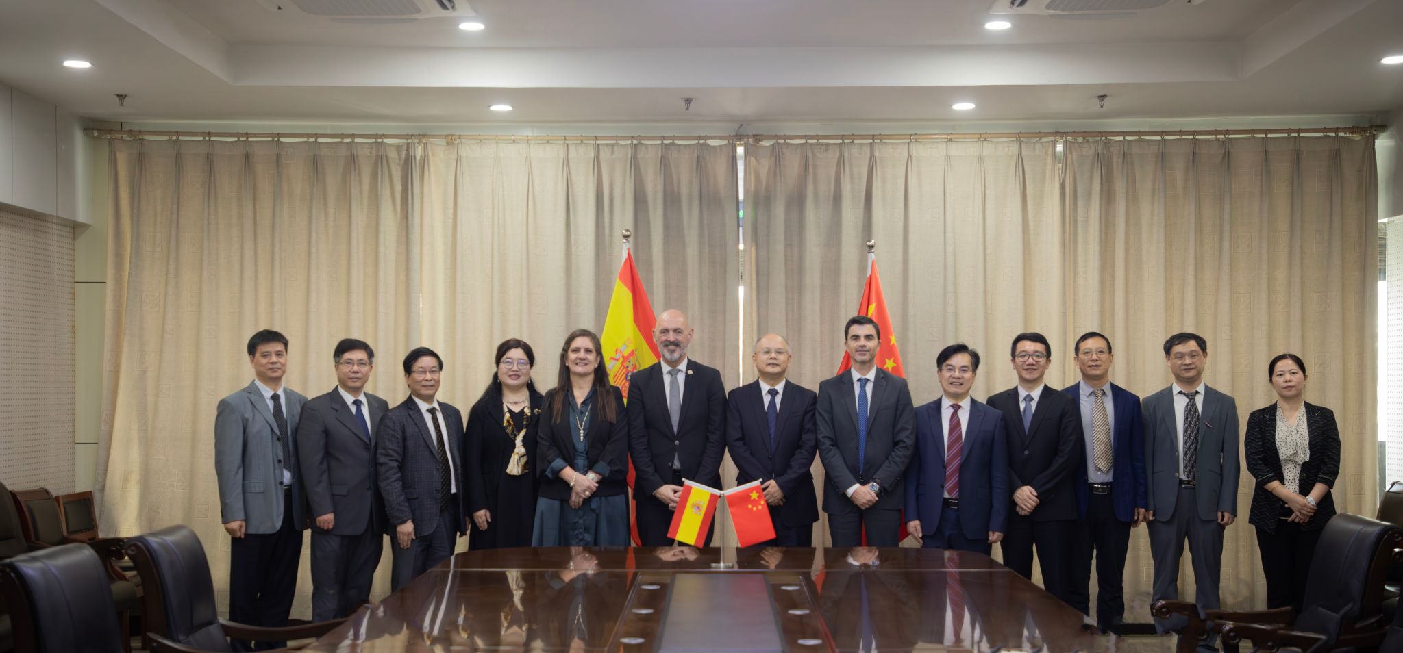 西班牙马德里康普顿斯大学校长办公室主任安娜·玛丽亚·基罗加·雷伊(Ana María Quiroga Rey)、国际处处长胡安·卡洛斯·伊斯基耶多(Juan Carlos Izquierdo)以及汤超先生、杨亮先生,鸭脖相关职能部门和学院负责人出席了此次活动。(国际合作处)