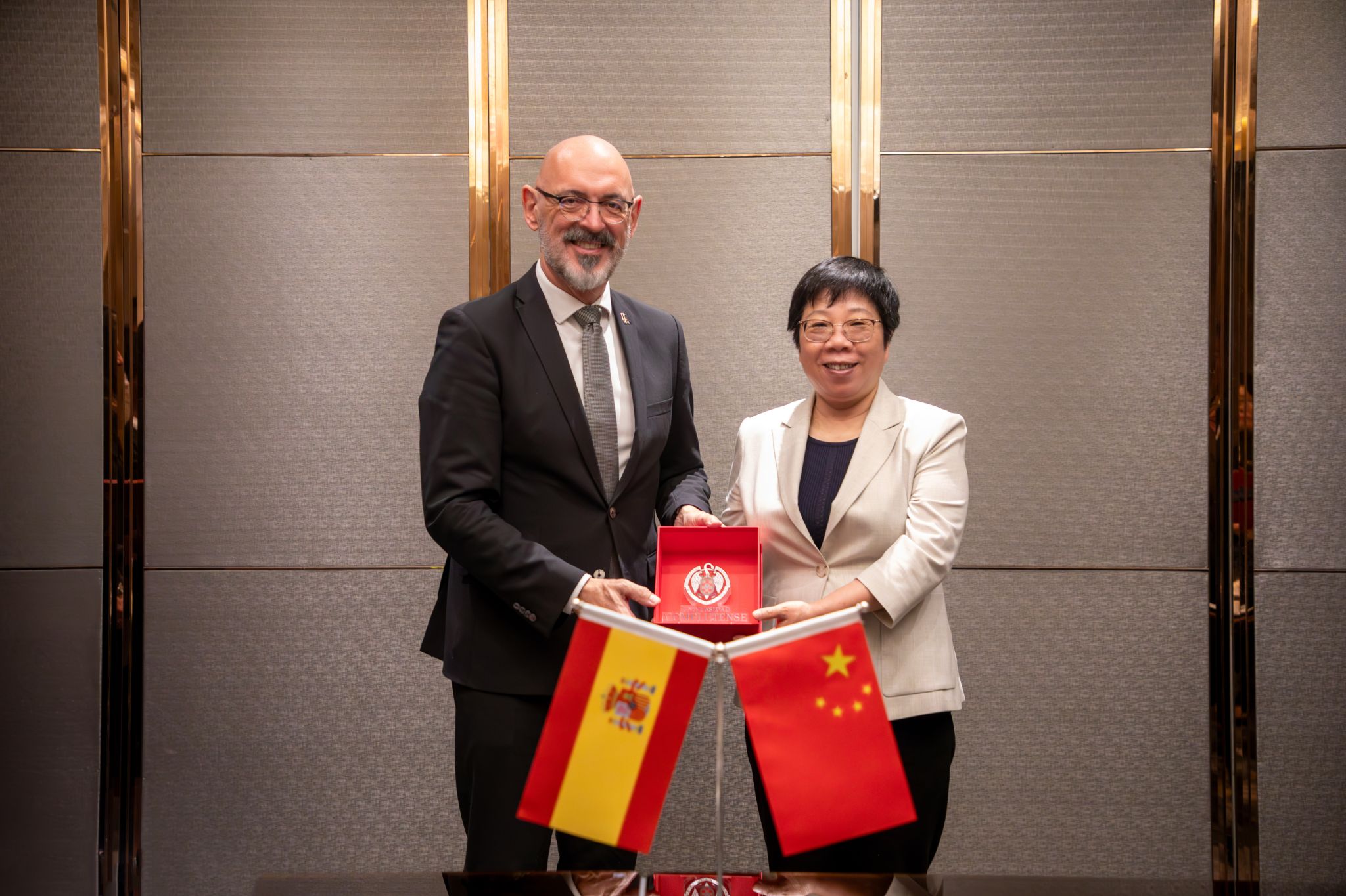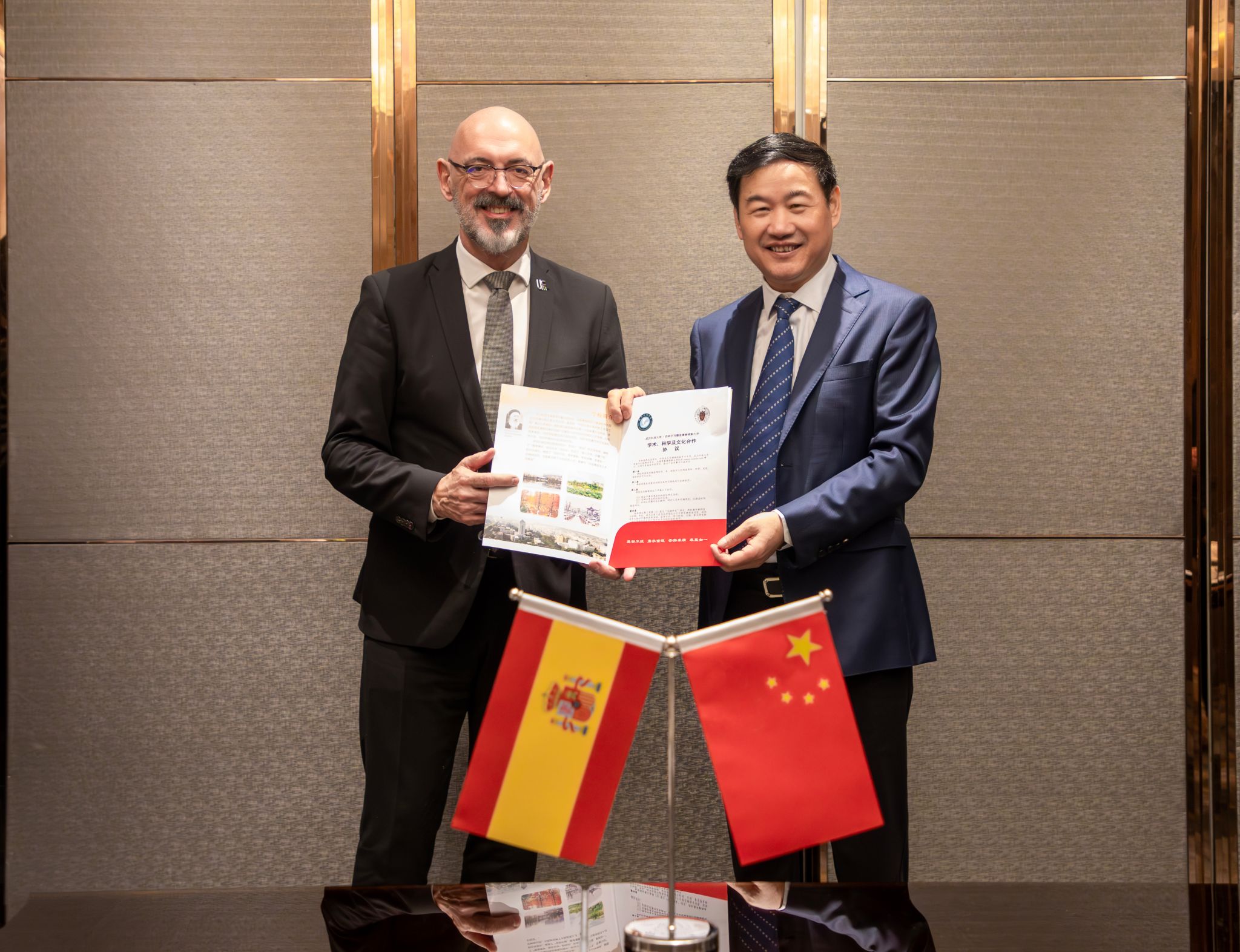 湖北省教育厅厅长周静与马德里康普顿斯大学校长合影