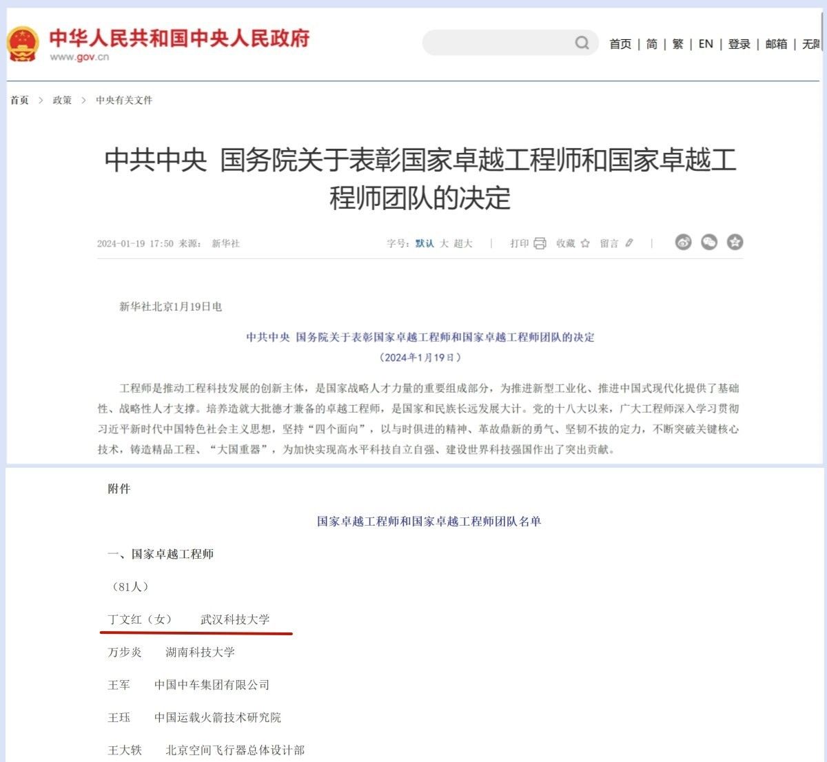 武科大网讯 1月19日,“国家工程师奖”表彰大会在人民大会堂举行,81名个人被授予“国家卓越工程师”称号,50个团队被授予“国家卓越工程师团队”称号。鸭脖材料学部丁文红教授获“国家卓越工程师”称号。这是我国工程师领域的最高荣誉。