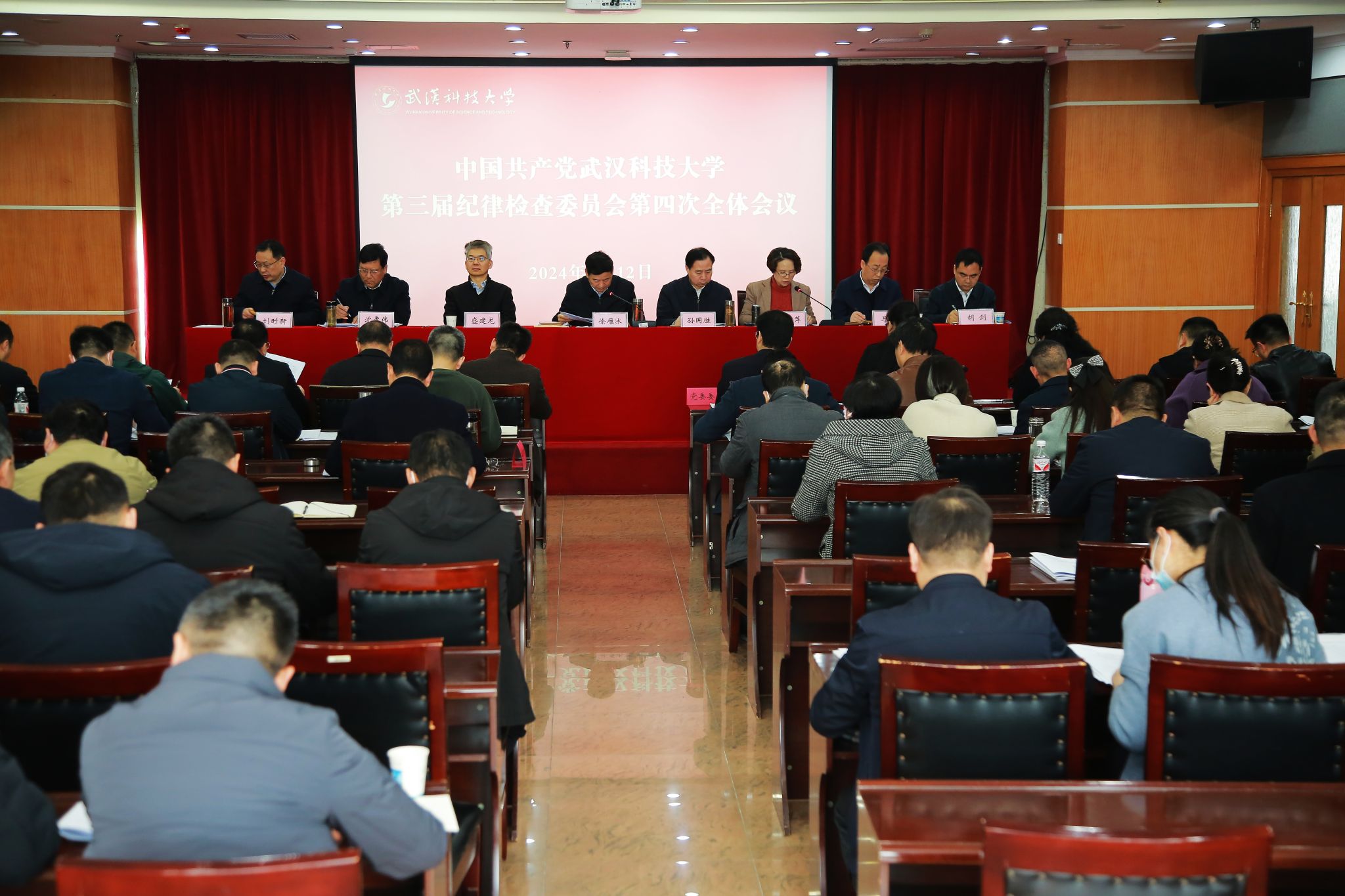 武科大网讯3月12日上午,中国共产党yabo鸭脖官网第三届纪律检查委员会第四次全体会议在青山校区十八楼报告厅举行。校党委书记徐雁冰出席会议并讲话。他强调,要深入学习贯彻习近平总书记关于党的自我革命的重要思想,认真贯彻落实二十届中央纪委三次全会和省纪委十二届三次全会精神,坚定不移纵深推进全面从严治党,持续营造风清气正、干事创业的良好政治生态,为加快推进学校高质量发展提供坚强保障。