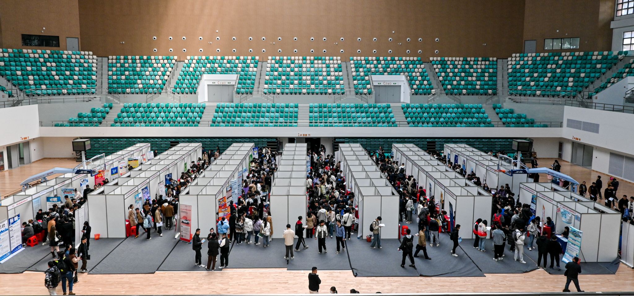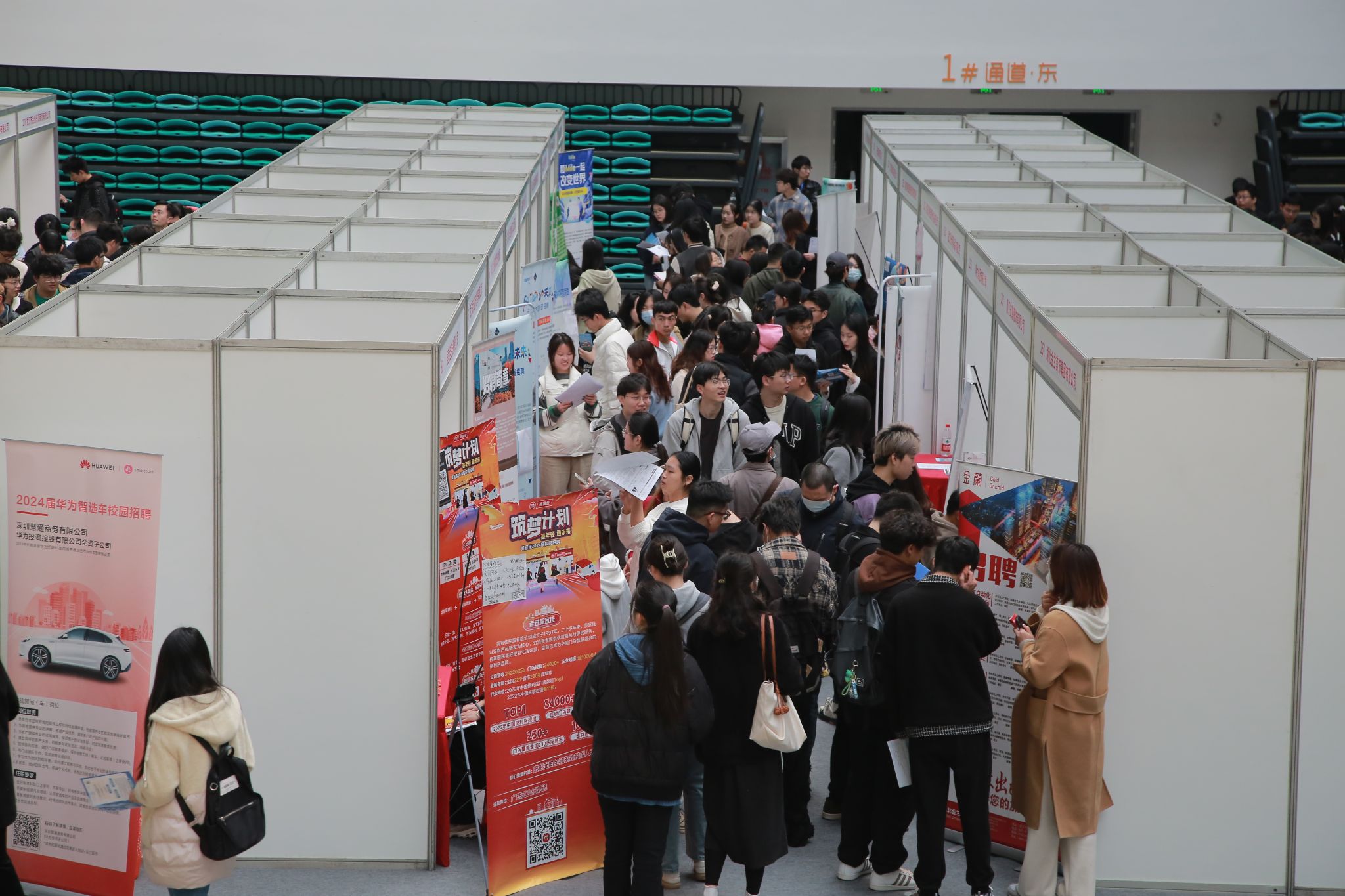 招聘会现场人头攒动,热闹非凡。不少展位前,毕业生们有序排队,还有一些手持简历的毕业生在会场穿梭,不时扫码获取更多招聘信息。