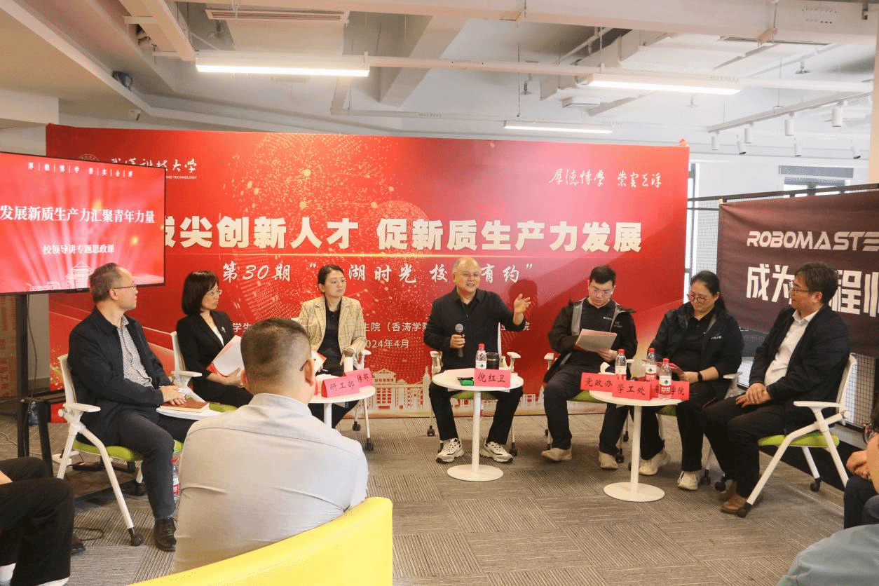 武科大网讯(通讯员姜超)4月15日,“育拔尖创新人才 促新质生产力发展”——第30期“沁湖时光 校长有约”活动在鸭脖黄家湖校区教十一楼A区创新创业大楼“机甲大师”训练基地举行。校长倪红卫与香涛学院学生代表和15位“崇实战队”队员共聚一堂畅聊创新与新质生产力,话新青年使命与担当。党委学生工作部部长潘丽莎主持。