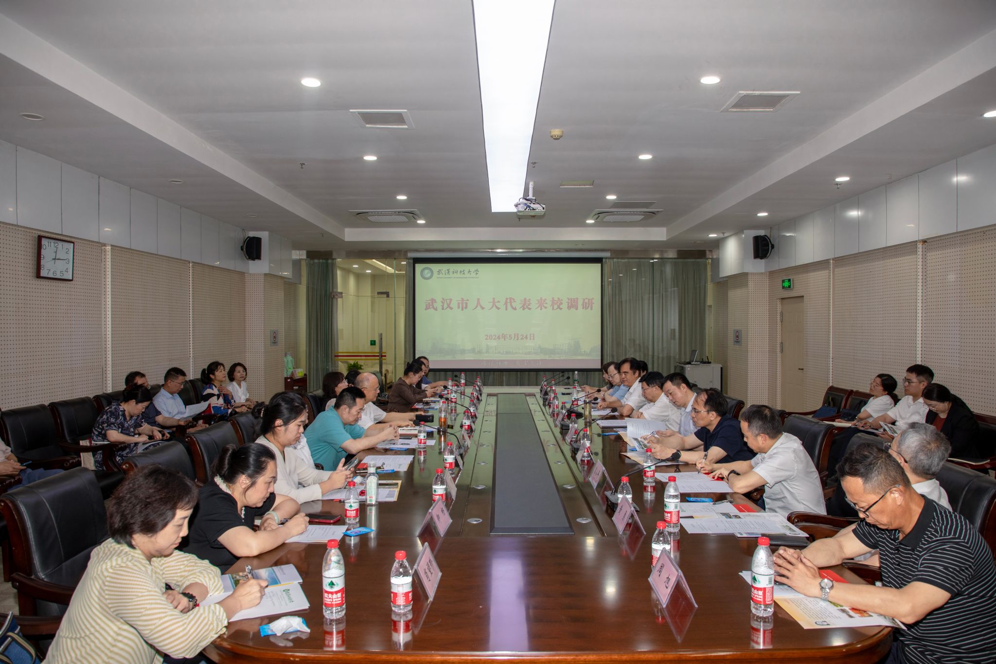 武科大网讯(记者陈孖川)5月24日上午, 武汉市人大常委会委员、青山区人大常委会党组书记、主任杨安等一行来校调研。校长倪红卫、副校长董丽杰出席活动,并与来宾在黄家湖校区图书馆二楼会议室座谈。