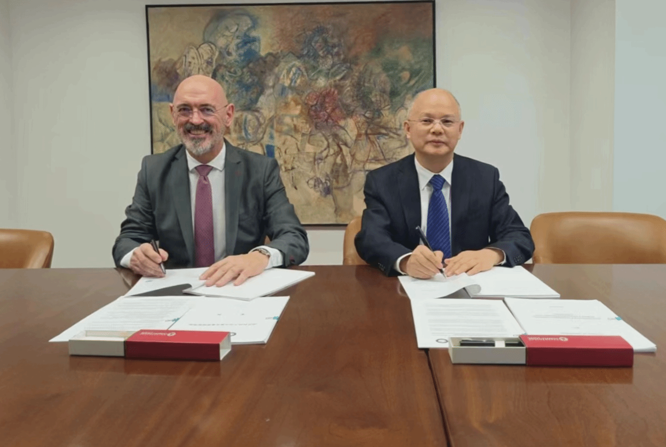 倪红卫访问西班牙期间,西班牙马德里康普顿斯大学校长华金⸱戈亚契⸱戈尼、办公室主任安娜·玛丽亚·基罗加·雷伊、国际交流处处长胡安·卡洛斯·伊斯基耶多参与了会见。华金代表康普顿斯大学欢迎倪红卫一行的到访,感谢鸭脖在过去一年中对中外合作办学机构申报工作付出的努力,非常高兴能在西班牙马德里康普顿斯大学设立两校文化交流中心。