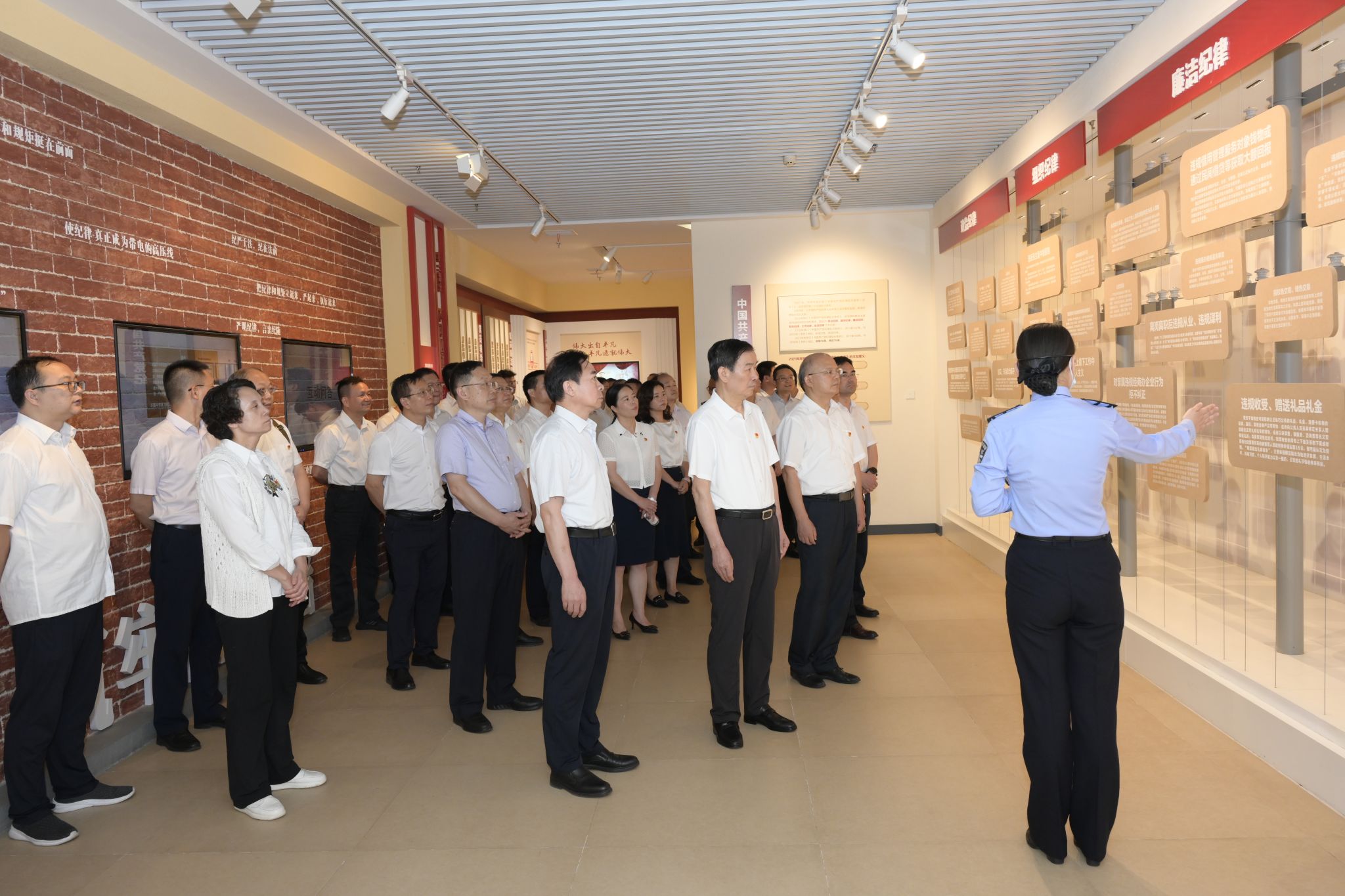 在讲解员的引导下,全体领导干部重温了习近平总书记关于全面从严治党的重要论述和党中央关于全面从严治党的部署要求,回顾了党的十八大以来以习近平同志为核心的党中央推进全面从严治党取得的历史性、开创性成就,深入了解了湖北省党风廉政建设和反腐败斗争成果展示,结合近年来查处的违纪违法典型案例开展警示教育。