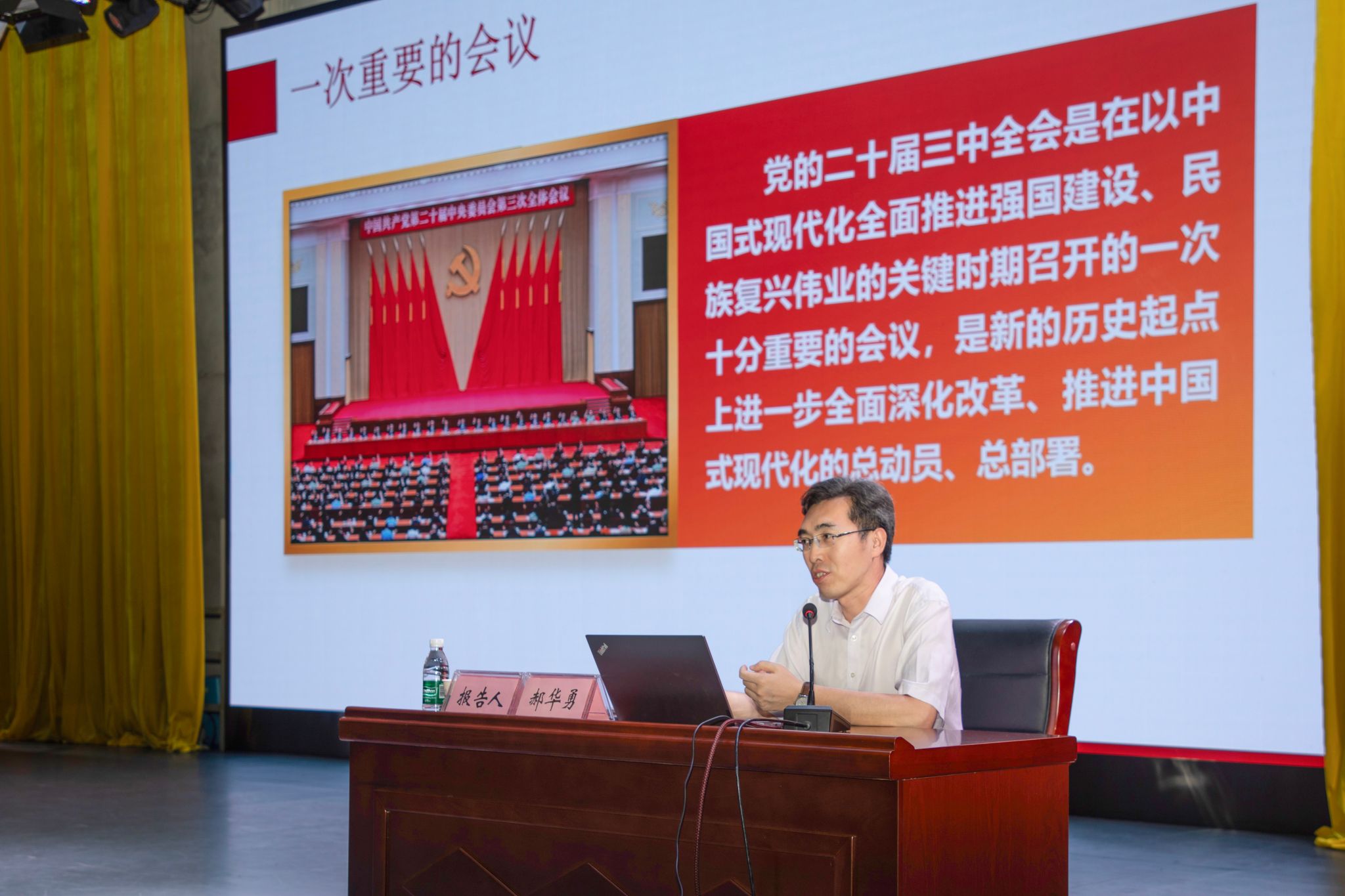 郝华勇以“进一步全面深化改革 开辟中国式现代化广阔前景——学习贯彻党的二十届三中全会精神”为题,紧紧围绕党的二十届三中全会审议通过的《中共中央关于进一步全面深化改革、推进中国式现代化的决定》,从重大意义和总体要求、系统部署和重要举措、根本保证和贯彻落实三个层面对党的二十届三中全会精神进行了系统阐述和深刻解读,并结合中国式现代化湖北实践和学校综合改革发展实际,提出了自己的思考。