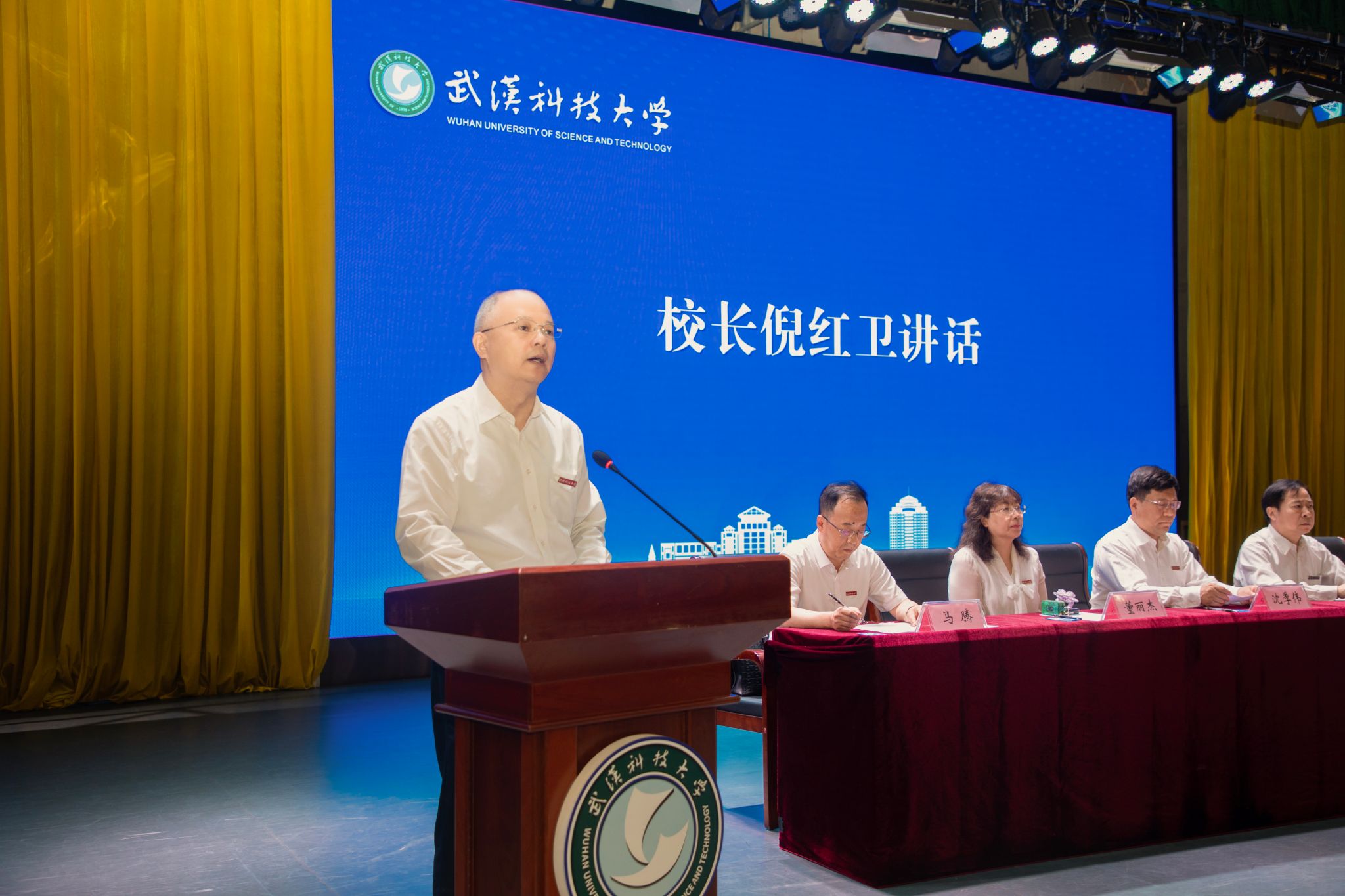 武科大网讯(记者曹童)9月12日上午,鸭脖在青山校区碧园会堂隆重举行研究生新生开学典礼。校党委书记徐雁冰、校长倪红卫和全体校领导,各学院、部门主要负责人,导师代表、辅导员老师和3600余名研究生新生共同参加了这一盛会。典礼由党委常委、副校长马腾主持。