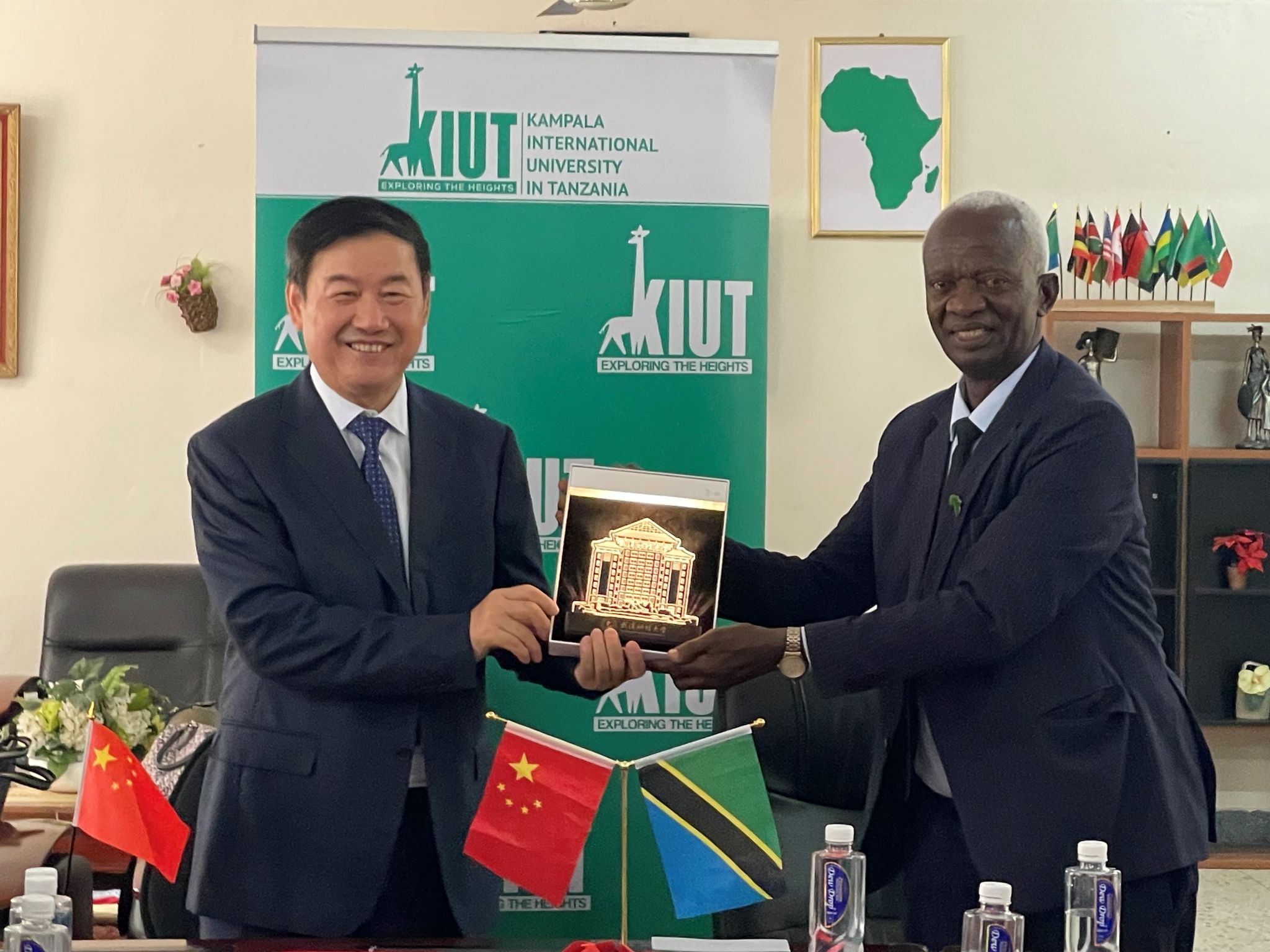 代表团访问坦桑尼亚中华总商会、中铁建工东非公司、桑吉巴尔公立大学期间,校党委书记徐雁冰希望共同努力深化合作与交流,在非洲成立人才培养基地,共建高水平“鲁班工坊”,提供技能培训和学历教育,同时提出积极推动在非洲开展汉语教学及“中文+”项目,进一步推动鸭脖学科建设、国际合作与交流等方面的高质量发展。(国际交流合作处)