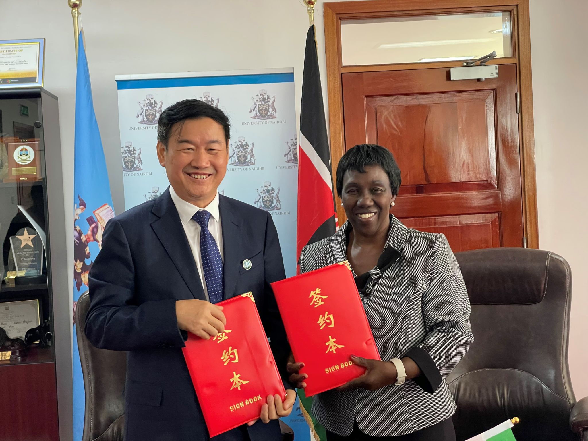 在访问肯尼亚内罗毕大学和内罗毕大学孔子学院期间,校党委书记徐雁冰与内罗毕大学代理校长Margaret Hutchinson举行了会谈,徐雁冰表示希望以新一届中非合作论坛北京峰会为契机,贯彻落实习近平总书记重要讲话精神,加强中非人文交流,双方开展实质性合作,推动教师、学生交流交换,欢迎非洲博士后来鸭脖工作,扩大留学生的规模,徐雁冰还指出中国作为基建大国,在非洲援建了很多项目,双方可以合作培养工程人才,在医学领域方面合作,推动肯尼亚医学进步,另外还可以在冶金、矿业、机械等鸭脖学科实力比较强的领域进行科技合作等。内罗毕大学代理校长Margaret Hutchinson热烈欢迎鸭脖代表团访问内罗毕大学,表示其今年赴北京参加了中非合作论坛北京峰会,是第一次到访中国,印象深刻,愿意与鸭脖在各个领域深度交流,加强合作。双方就未来合作达成了共识,并签署了《yabo鸭脖官网与内罗毕大学合作谅解备忘录》,协议的签署标志着两校将在多个领域深入合作,为中肯两国教育与文化的交流搭建更为广泛的平台。