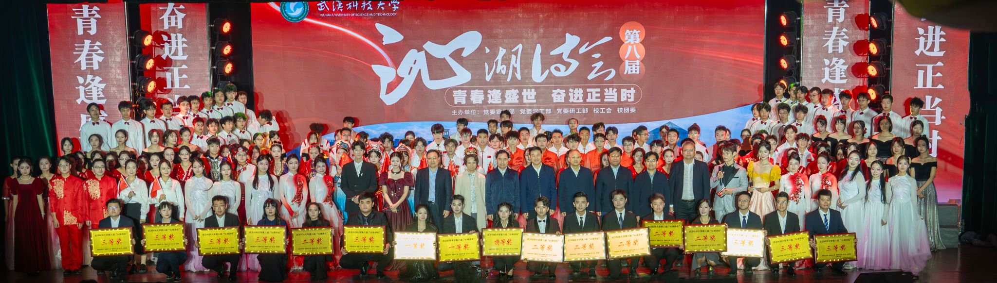 经专家评委综合评审,马克思主义学院获特等奖,城市建设学院、计算机科学与技术学院获一等奖,法学与经济学院、艺术与设计学院、资源与环境工程学院、体育学院等6个学院获二等奖,信息科学与工程学院、材料学部、机械学院等8个学院获三等奖。校领导上台为获奖学院颁奖并合影留念。