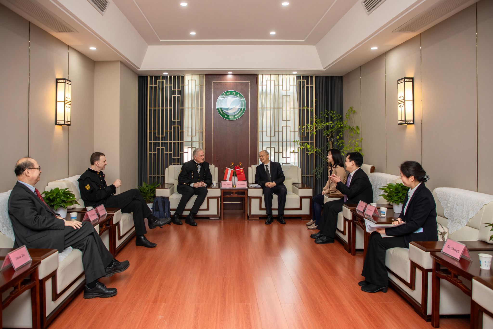 仪式开始前,倪红卫、吕勇与莱奥本矿业大学代表团、K1-MET中心代表团分别座谈,双方就进一步深化师生交流、人才培养、联合科研等方面的合作进行了充分交流。