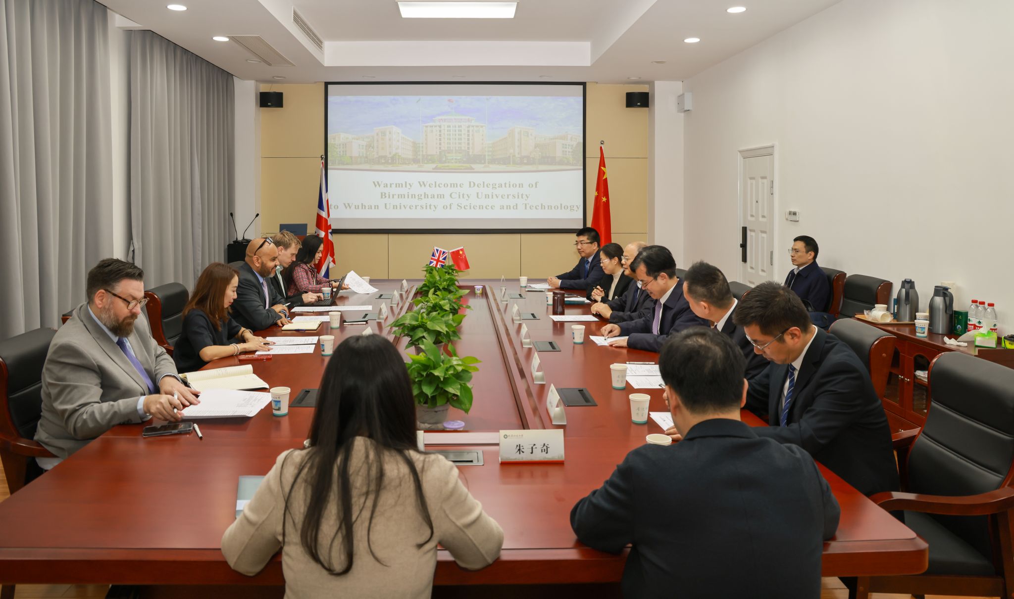 武科大网讯 11月21日,英国伯明翰城市大学校长David Mba一行5人来校访问。校长倪红卫,副校长吕勇在黄家湖校区会见来宾,双方就深化两校合作、推进人才培养进行了深入座谈交流。国际交流合作处处长罗圆萍主持座谈会。