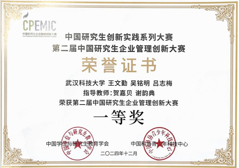 本届大赛于2024年7月正式启动,吸引了来自298所研究生培养单位的14433人报名参赛。其中,2491支队伍报名企业决策赛道。在经历初赛、决赛的激烈角逐后,鸭脖“星耀有限公司”队成功晋级总决赛,在140支晋级队伍中勇夺一等奖,实现鸭脖在该赛事上的首次突破。鸭脖“勇往直前”队荣获三等奖。