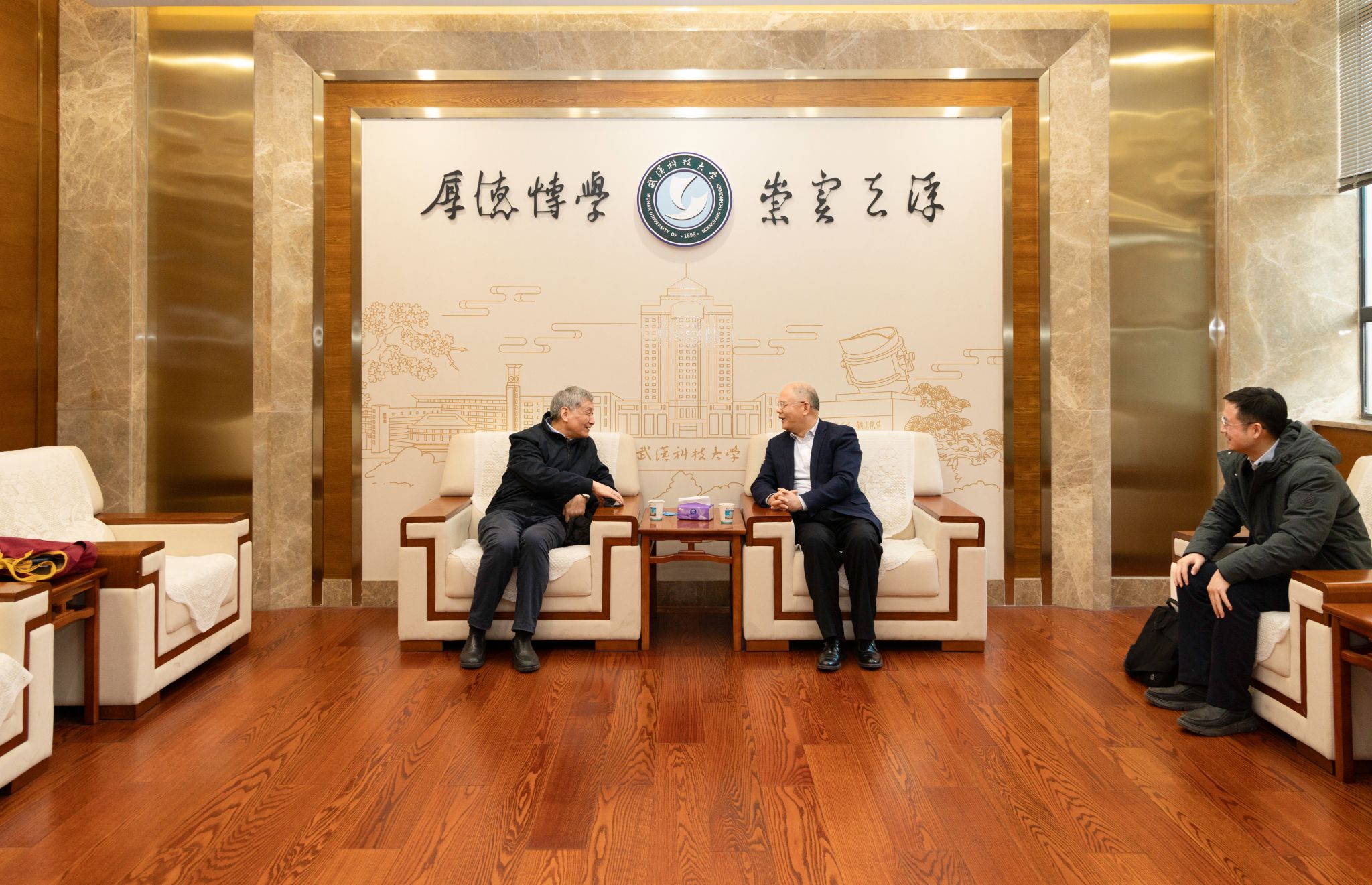 倪红卫对刘云圻院士的莅临表示热烈欢迎,对其长期以来对学校的关怀、支持与帮助表示感谢。倪红卫向刘云圻院士介绍了学校近年来在学科建设、人才培养等方面取得的成就,希望与刘云圻院士保持紧密联系,加强交流合作,共同推动学校高质量发展。刘云圻院士对鸭脖近年来取得的卓越成绩表示祝贺,期望将来能有更多机会与武科大师生深入交流合作。