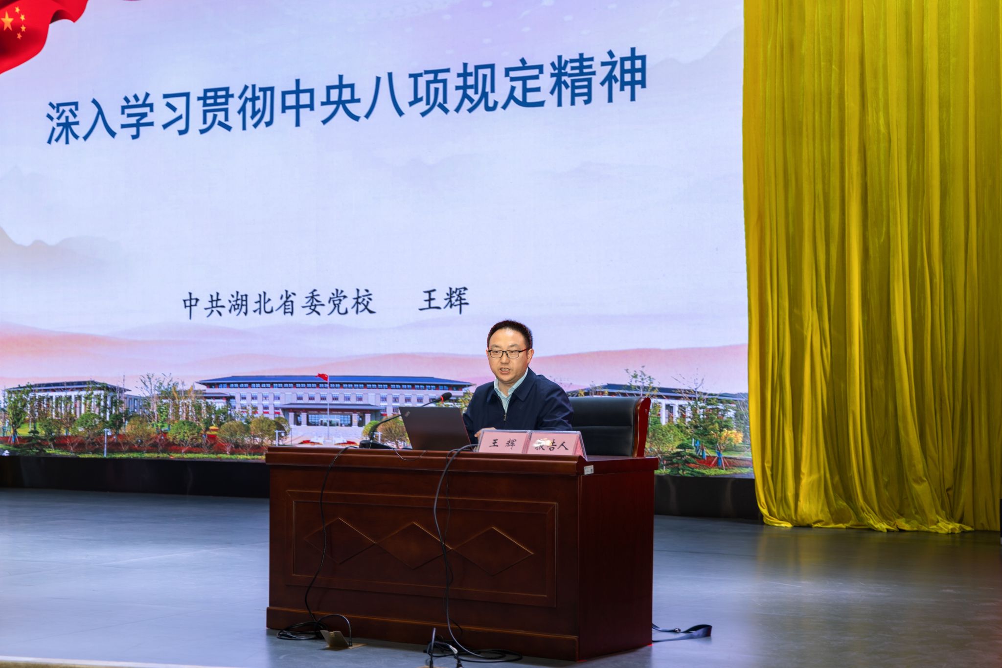 会上,中共湖北省委党校王辉教授受邀作辅导报告。王辉以《深入学习贯彻中央八项规定精神》为题,围绕从严管党治党的关键一招、中央八项规定精神的具体要求、党员领导干部的担当作为等三个方面进行了详细讲解。