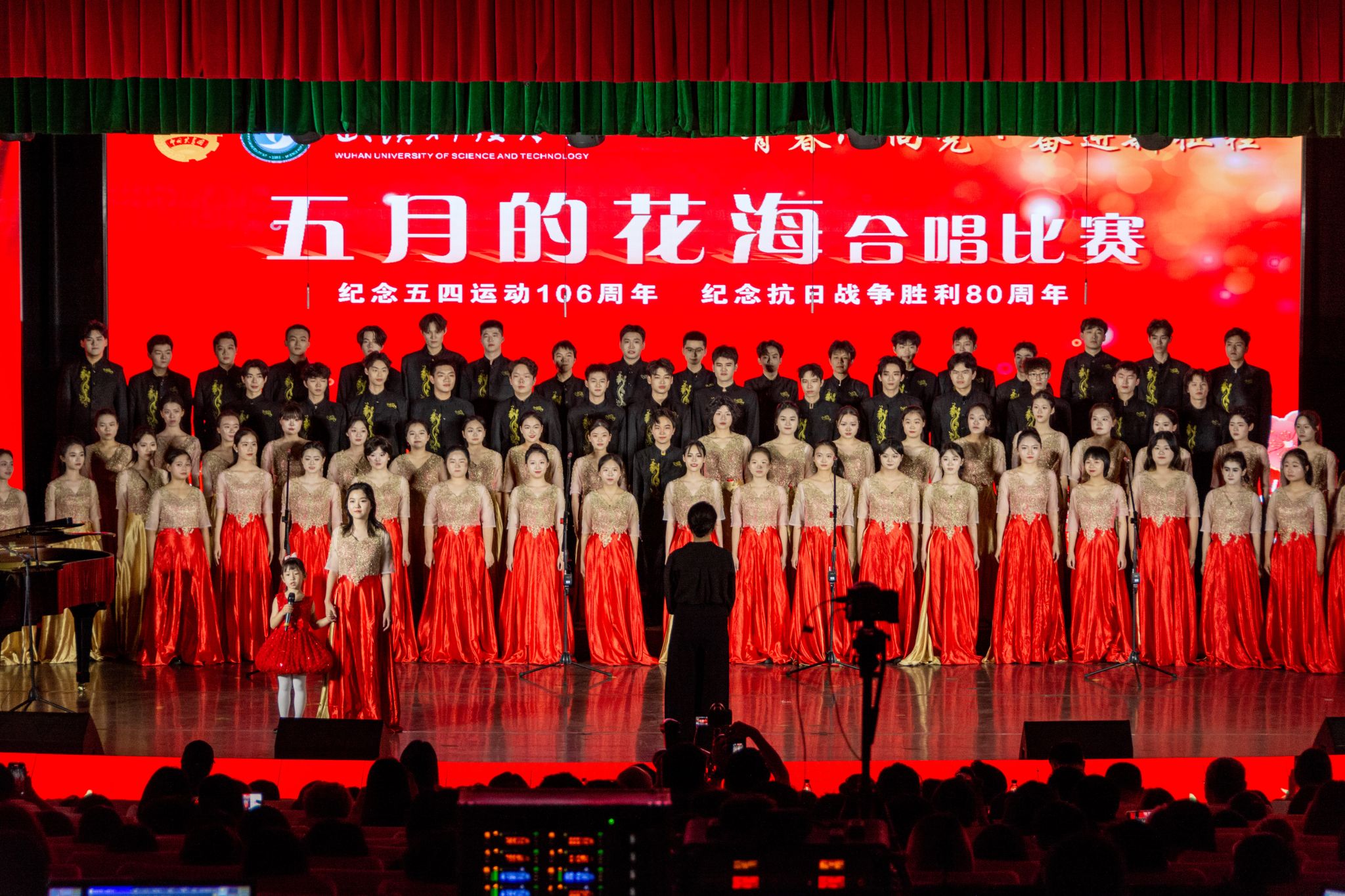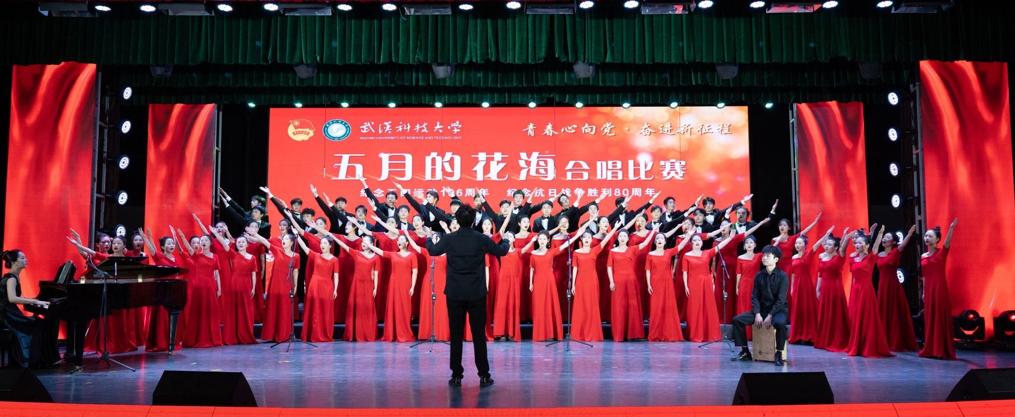 武科大网讯(见习记者张汇 记者李周阳)4月26日晚,学校在黄家湖校区沁湖礼堂举行2025年五四表彰大会暨“五月的花海”合唱比赛。千余名师生齐聚一堂,用歌声纪念五四运动106周年,展现爱党爱国爱社会主义的坚强决心,迎接五四青年节的到来。