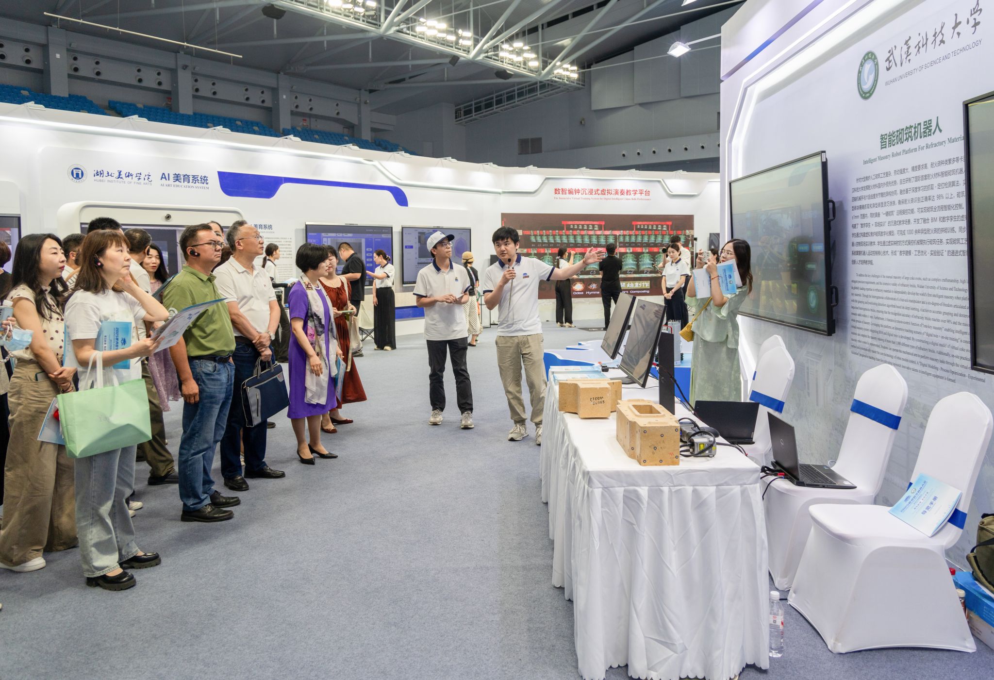 武科大网讯(记者陈孖川)5月14—16日,2025世界数字教育大会在湖北武汉召开,鸭脖机械工程学院研制的“耐火材料智能砌筑机器人平台”亮相湖北高等教育数字化成果展,吸引了来自全球数十个国家和地区嘉宾的关注和点赞。