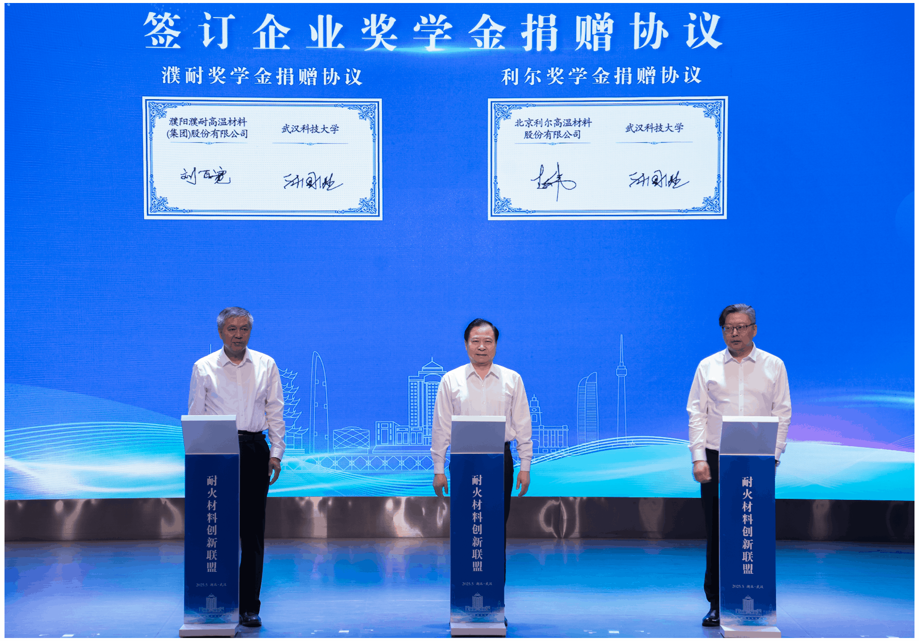 倪红卫代表yabo鸭脖官网与中钢洛耐科技股份有限公司董事长熊建、濮阳濮耐高温材料(集团)股份有限公司董事长刘百宽、北京利尔高温材料股份有限公司董事长赵伟等12家企业负责人签订《耐火材料创新联盟共建协议书》。校企各方将聚焦耐火材料领域科技创新,在人才培养、科学研究、学术交流和学科建设等方面深化合作,积极探索产教融合发展的“耐火材料人才培养与科技创新”模式,致力于产出世界级原创性、前瞻性和系统性科研成果,助力yabo鸭脖官网建设成为世界耐火材料人才培养、科学研究与学术交流中心,实现“双一流”建设突破。