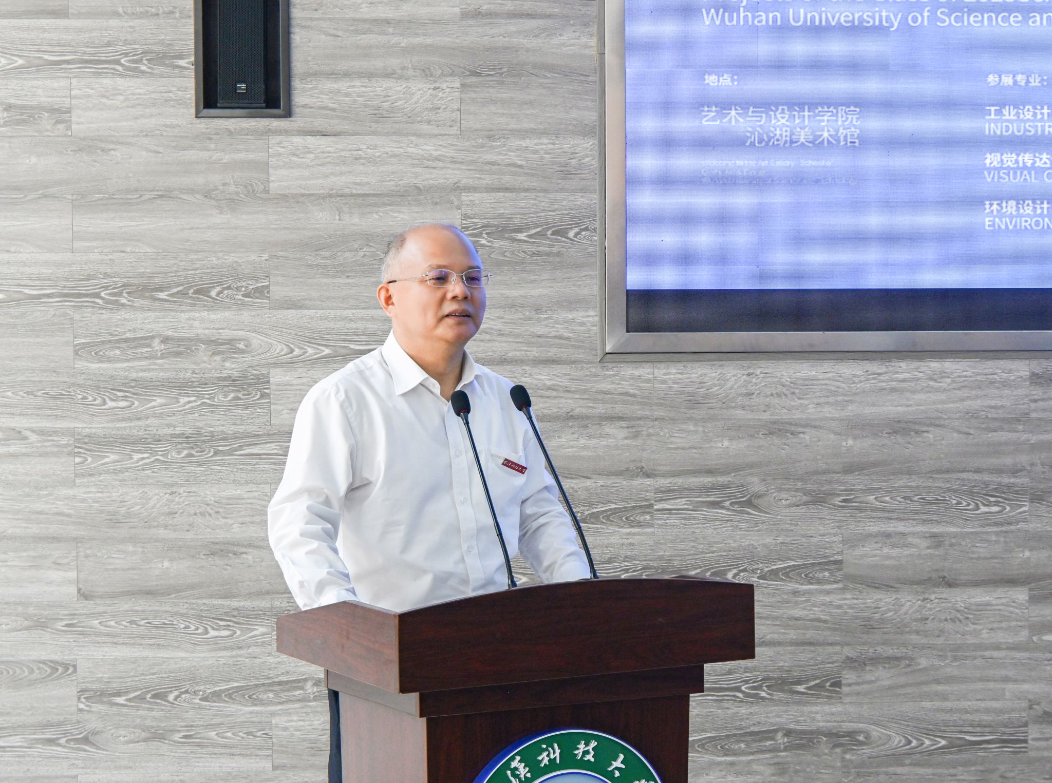 武汉老字号协会副会长、精益眼镜董事长钟少斌作为合作企业代表讲话,他表示,武科大艺术与设计学院每届毕业设计作品展都有新创意、新理念,特别是对蔡林记、三镇民生甜食馆、叶开泰、品芳照相馆等7个“老字号”的创新设计表达让人惊艳。未来,武汉老字号协会将持续组织校企交流活动,搭建更开放的实践平台,让艺术创作与企业实际需求实现更精准对接。