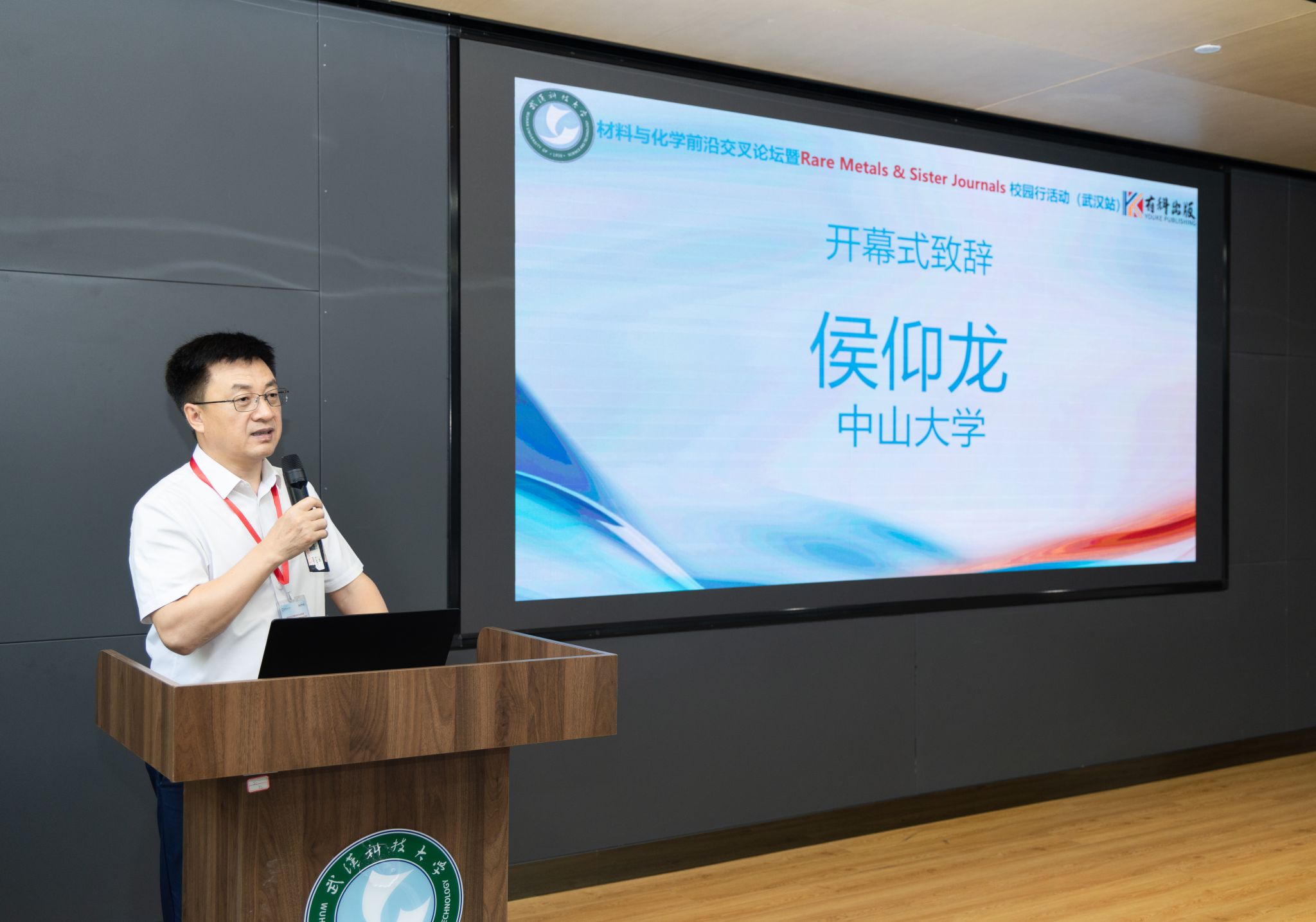 会议主席、《Rare Metals》副主编、中山大学材料学院院长侯仰龙教授在致辞中介绍了期刊的办刊宗旨与发展愿景,强调材料科学与化学交叉融合的重要性。他表示,期待通过活动加强学术界与期刊的互动合作,提升科研成果传播效率与影响力,为青年学者搭建更广阔的展示平台。