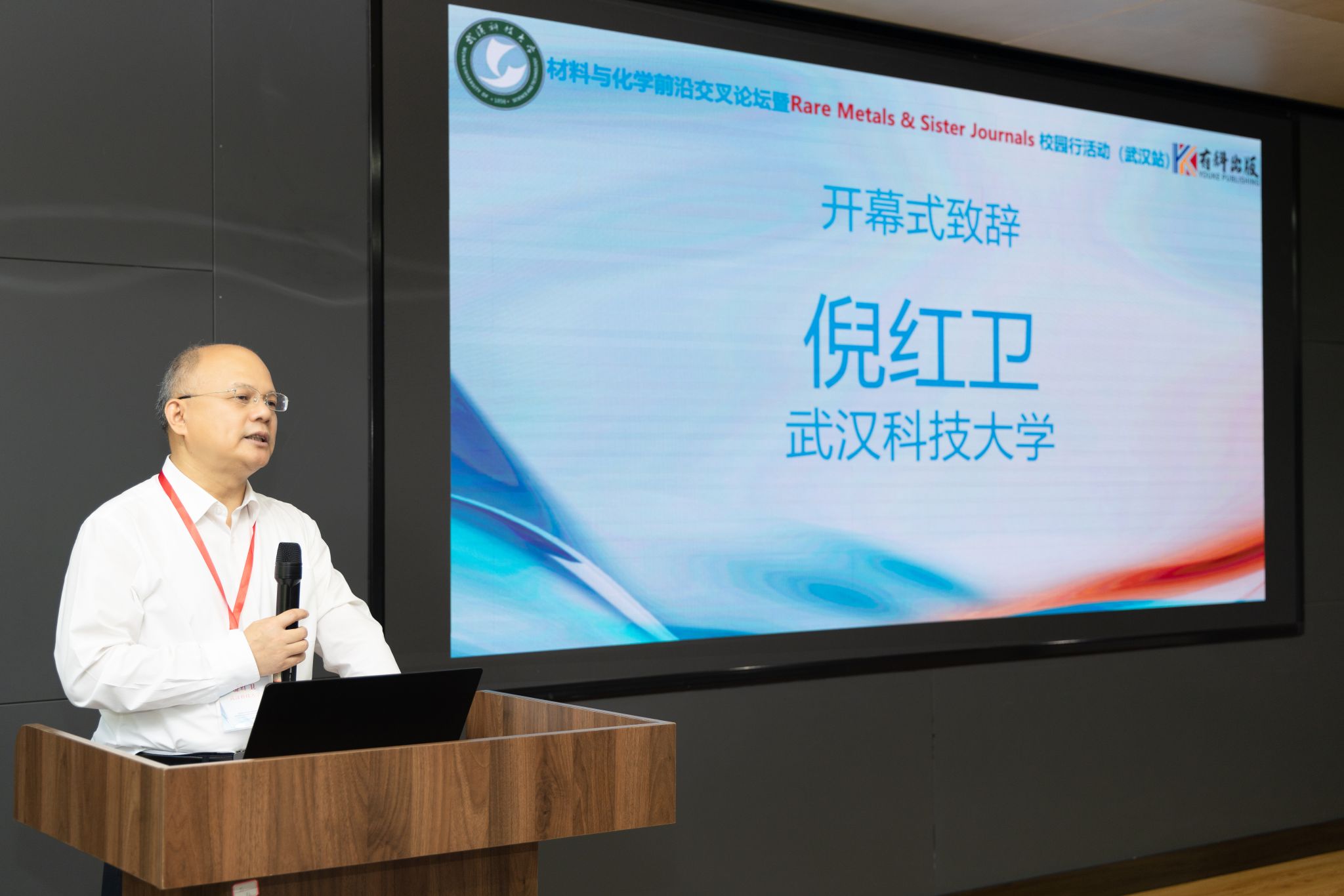 武科大网讯(通讯员杨璐)6月13日,材料与化学前沿交叉论坛暨Rare Metals & Sister Journals校园行活动(武汉站)在鸭脖青山校区图书馆路演厅举办。校长倪红卫出席活动,副校长董丽杰主持开幕式。