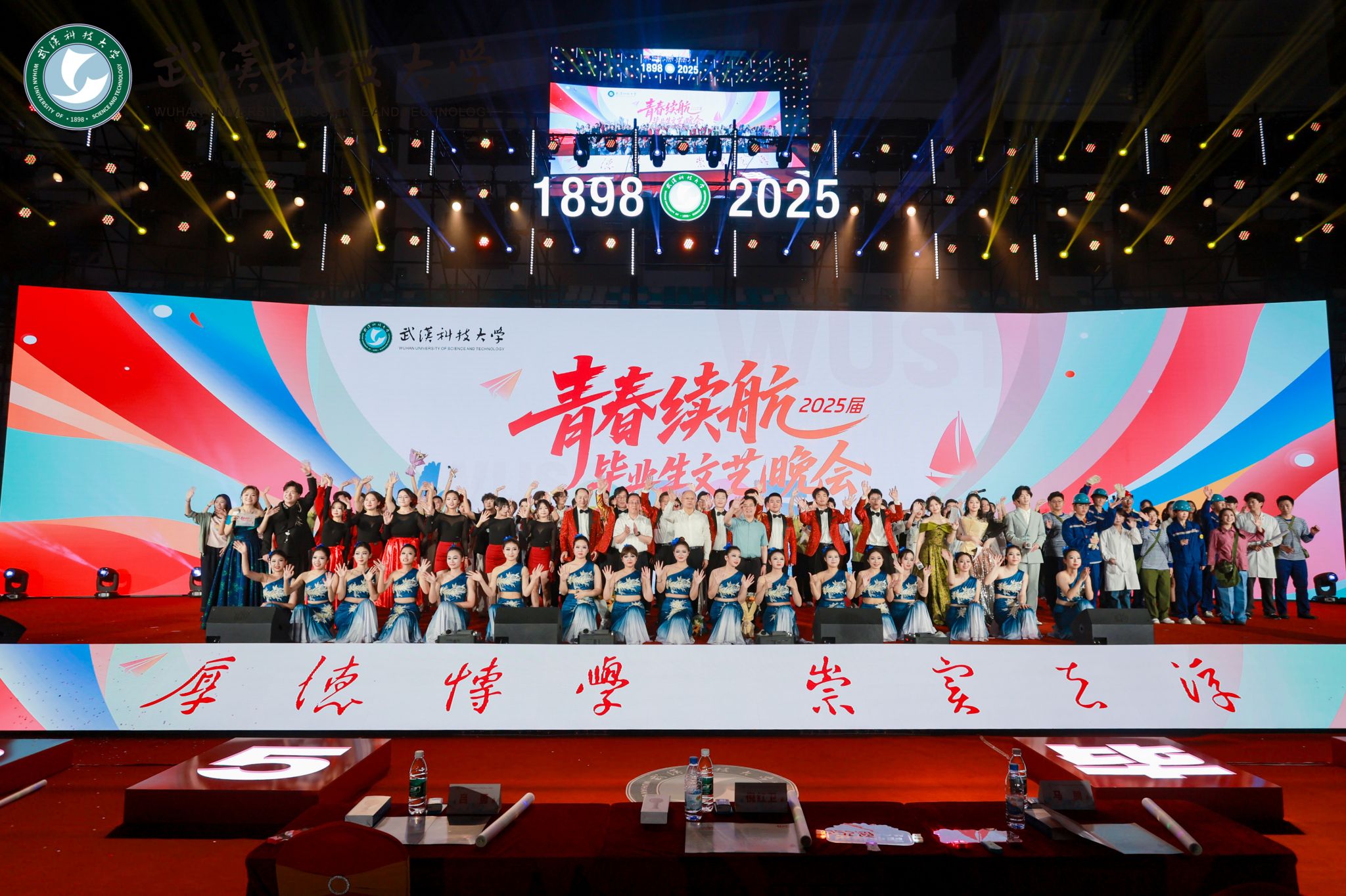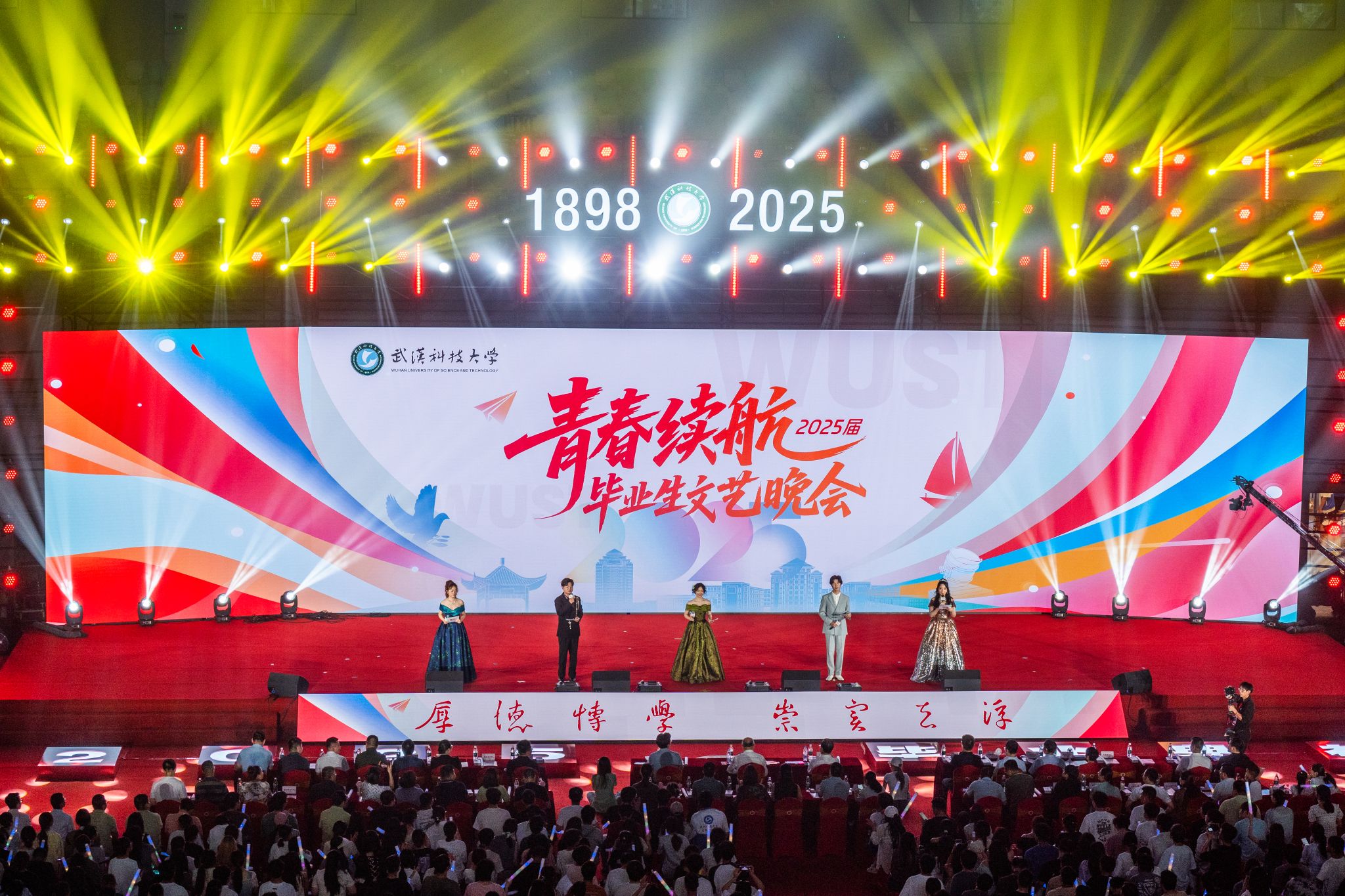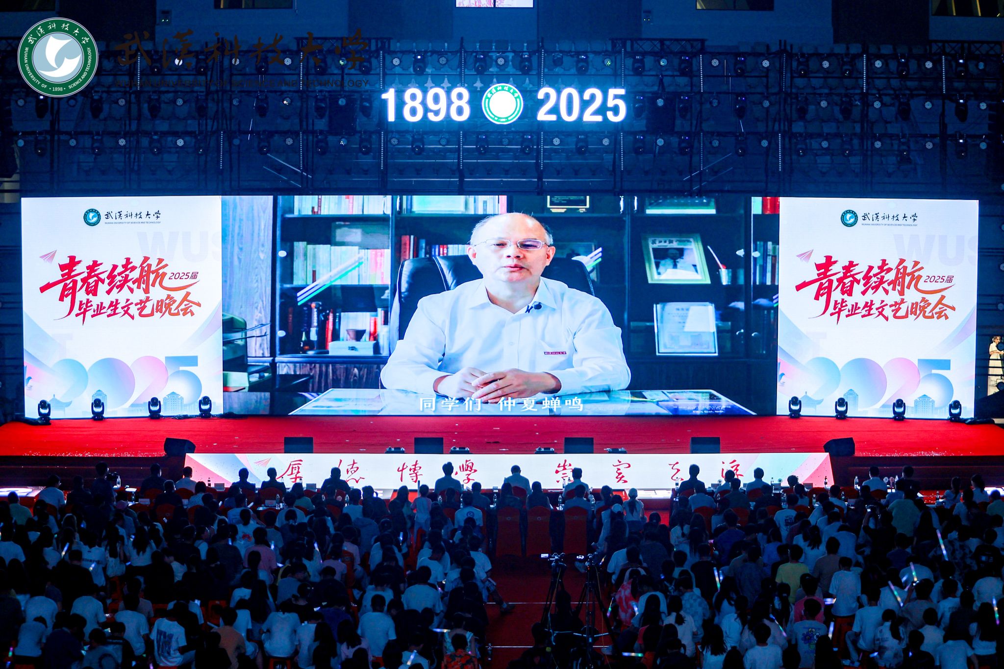 武科大网讯(通讯员周琬)听青春弦歌,赏风华绽放,忆校园旧梦,展未来新篇。6月16日晚,学校“青春续航”2025届毕业生文艺晚会在黄家湖校区沁湖体育馆上演。校长倪红卫,副校长吕勇、马腾,学校各职能部门负责人、各学院领导、毕业年级辅导员和全体毕业生齐聚一堂,共赴这场承载回忆、激情与希望的盛会。
