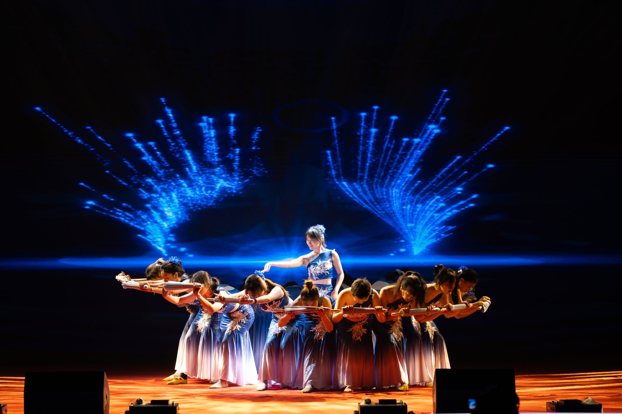 绚丽的灯光亮起,电声乐队合奏《你要跳舞吗》《奔跑》为晚会拉开序幕。舞台下,荧光棒此起彼伏的挥舞浪潮与音乐节奏相互呼应,瞬间将现场气氛推向高潮。