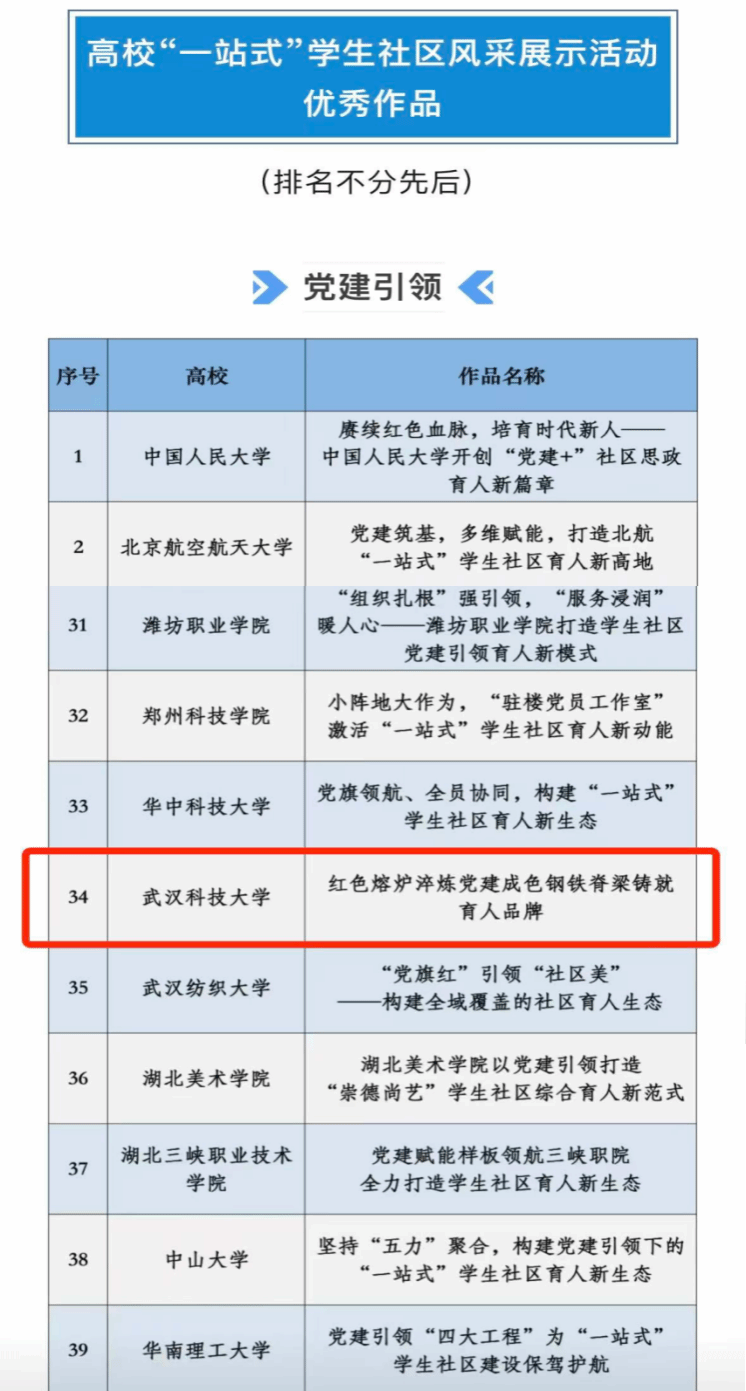据悉,本次评选面向全国高校“一站式”学生社区建设单位,旨在集中展示各高校在社区管理、思政教育、服务保障等方面的创新实践。经高校推荐、专家评审等程序,全国共遴选出158项优秀成果,入选成果将纳入全国高校思想政治工作网资源库,并通过“一站式”学生社区工作云平台及高校思政网微信公众号进行集中展示与推广。(党委学生工作部)