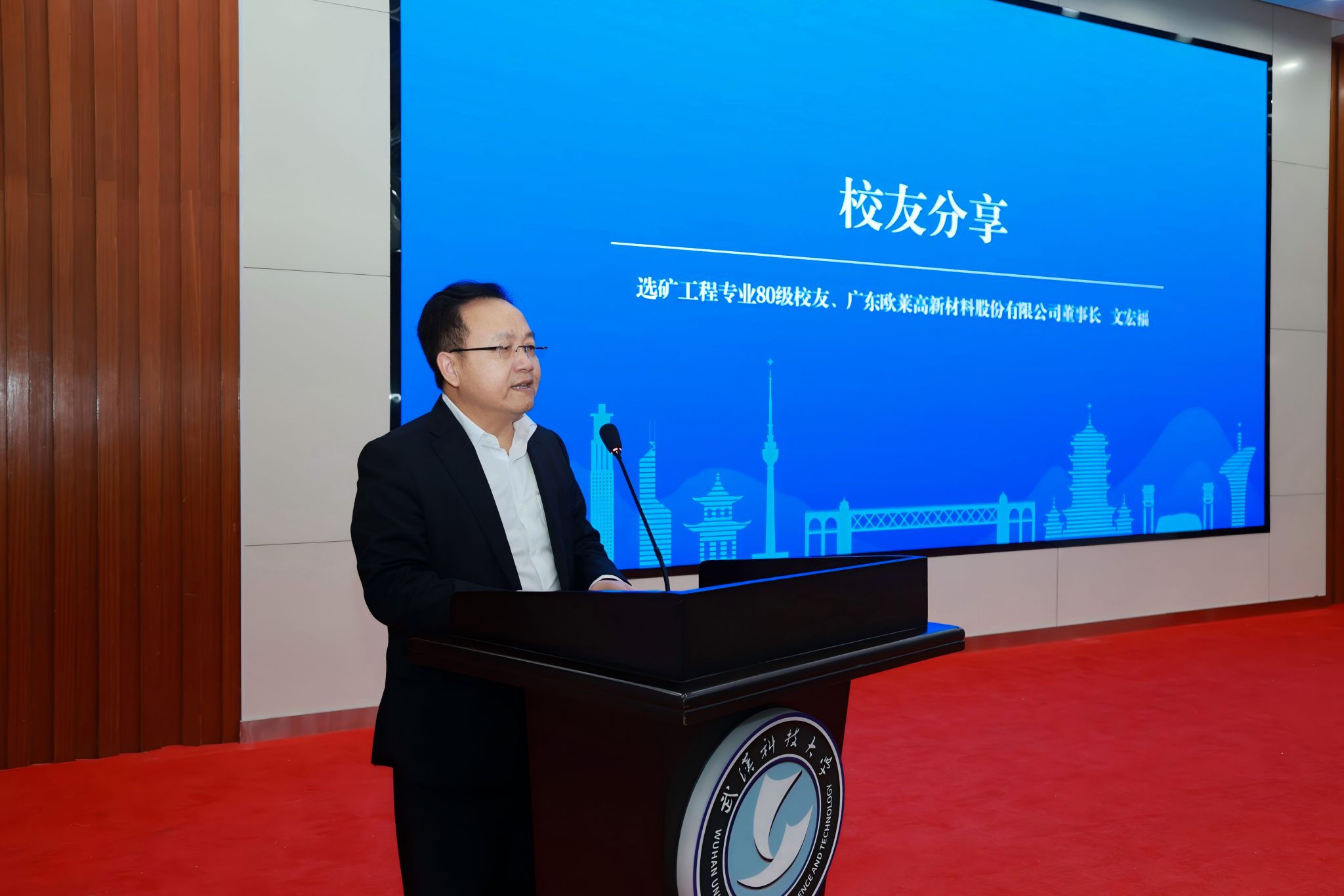 “作为国家级专精特新‘小巨人’重点企业、国家高新技术企业、国家知识产权优势企业,我们将依托湖北的产业基础,进一步加强交流与合作。”鸭脖选矿工程专业1980级校友、广东欧莱高新材料股份有限公司董事长文宏福在发言中回顾了从武科大求学到投身产业的奋斗历程,介绍了企业打破国外在溅射靶材领域垄断的努力,并表达了回归湖北、反哺母校的真挚情怀。
