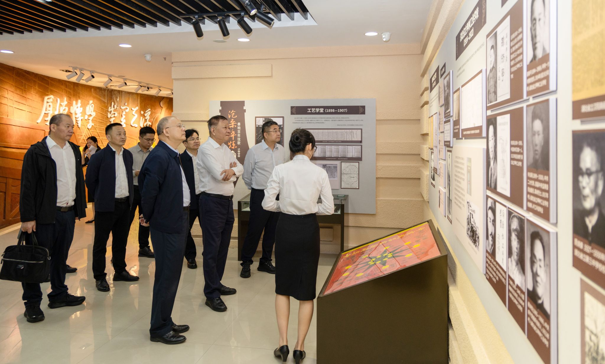 会前,刘俊刚一行实地调研了鸭脖人工智能工程实践与创新中心,参观了校史馆。