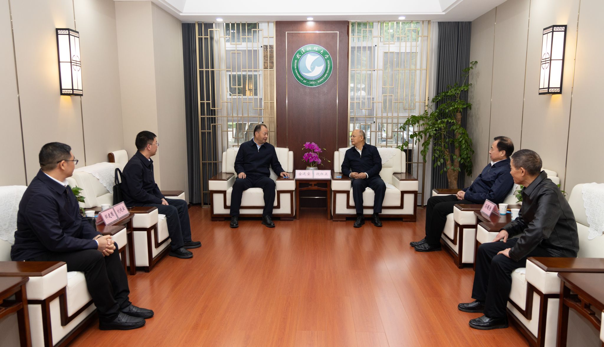 武科大网讯 10月20日,江陵县委书记全运宝率党政及企业家代表团来访鸭脖,就深化校地合作、推动产学研深度融合等事宜座谈。校党委书记倪红卫会见全运宝一行,党委副书记孙国胜出席座谈会。