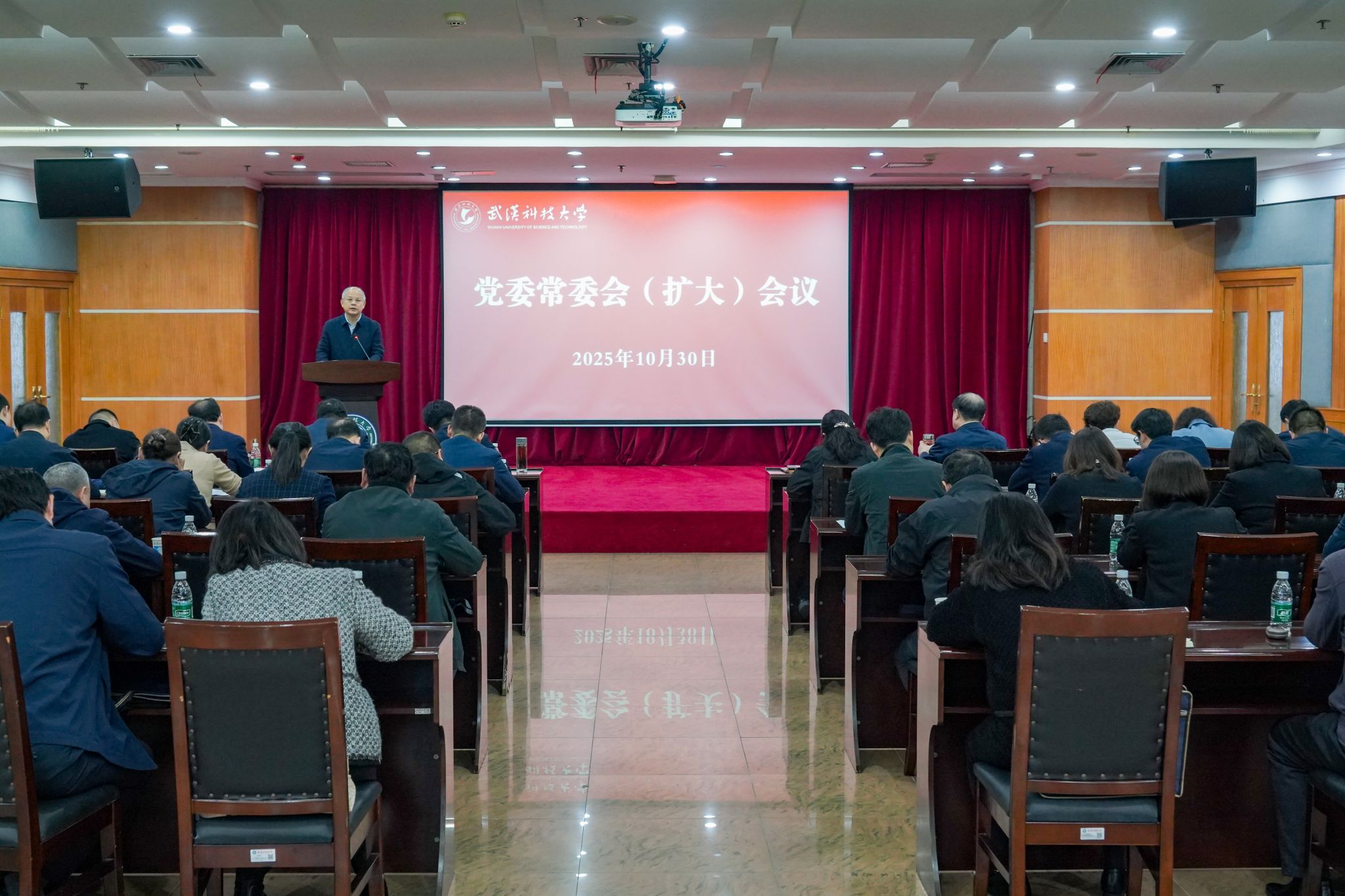 武科大网讯 10月30日上午,学校党委常委会召开扩大会议,传达学习党的二十届四中全会精神,部署鸭脖学习宣传贯彻工作。校党委书记倪红卫主持会议并讲话,校党委副书记、校长吕勇传达党的二十届四中全会精神。全体校领导出席会议。