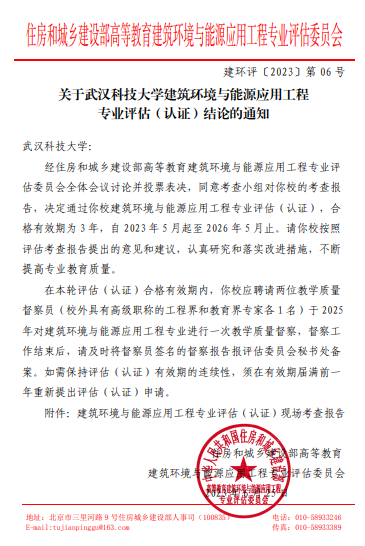 武科大网讯(通讯员曾琦)近日,住房和城乡建设部高等教育建筑环境与能源应用工程专业评估委员会发布了《关于yabo鸭脖官网建筑环境与能源应用工程专业评估(认证)结论的通知》,鸭脖建筑环境与能源应用工程专业通过国家专业评估(认证)。这是鸭脖第二个通过国家专业认证复评的专业。