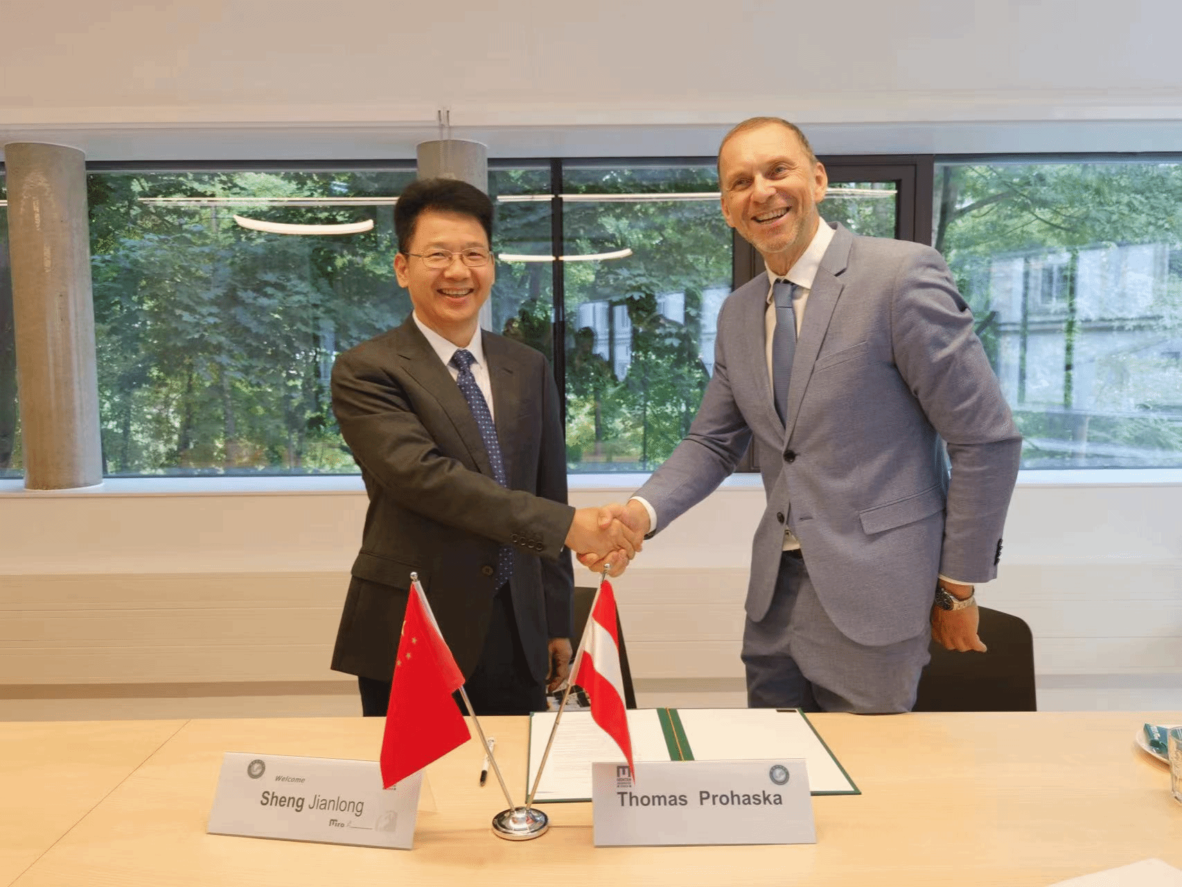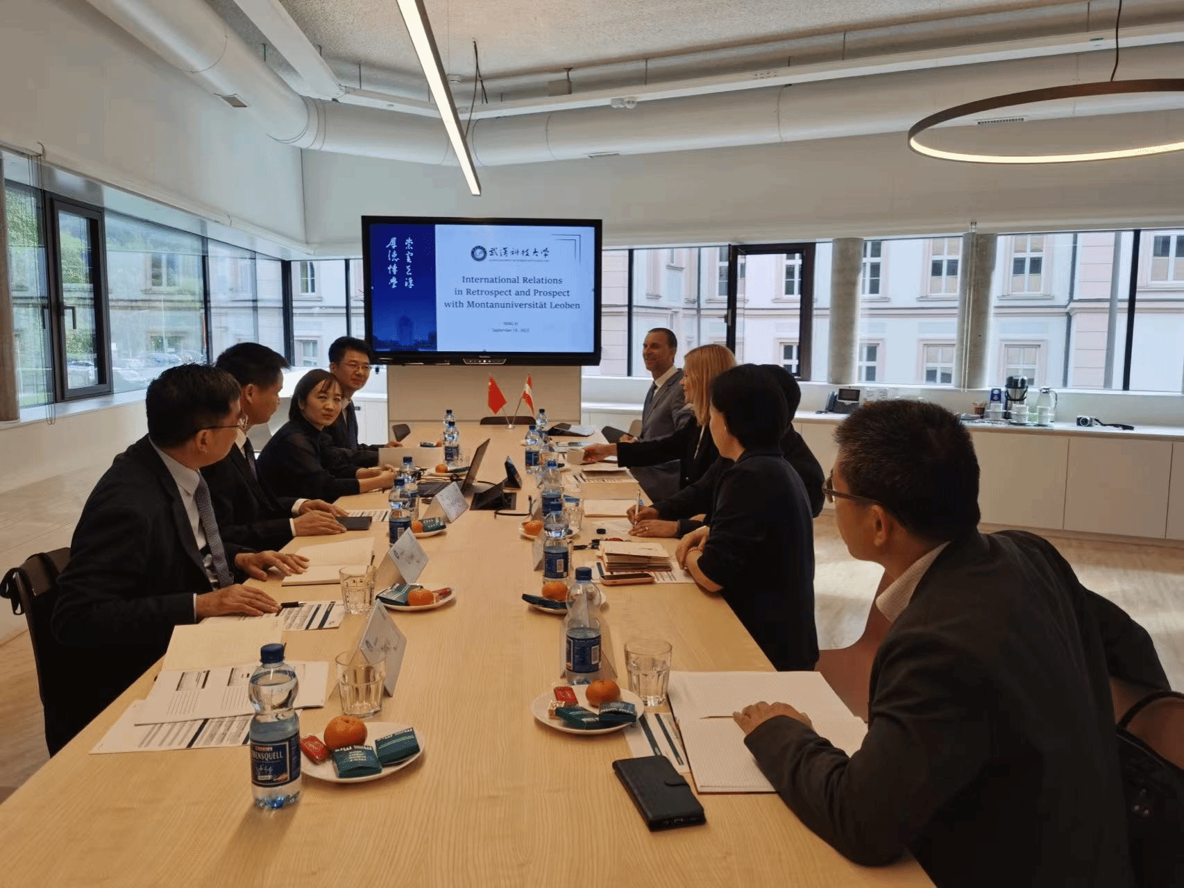 在奥地利莱奥本矿业大学,盛建龙一行与莱奥本矿业大学副校长Thomas Prohaska会面,续签两校合作协议,并就进一步拓宽并深化科研合作、学生联合培养等方面合作交换意见。国际处副处长杨习对两校15年的合作成果和未来两校的合作方向做了展示汇报。盛建龙表示,莱奥本矿业大学与鸭脖学科背景相似,合作共赢符合两校未来的发展战略,对未来两校在高水平人才培养等方面的合作给予了殷切的希望。他希望双方进一步密切合作关系,拓展合作领域,丰富合作内容,不断开创两国、两校教育合作的新局面。