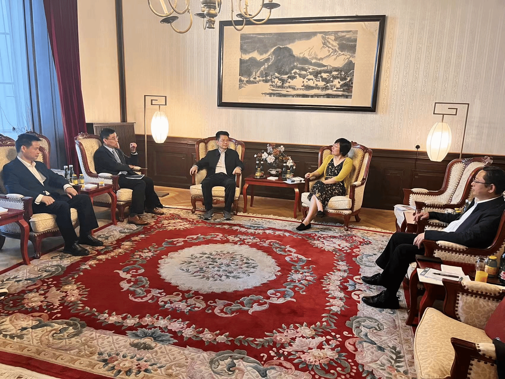 在奥期间,盛建龙一行还拜访了中国驻奥地利使馆科技教育文化处,与科技教育文化处处长黄崇岭探讨如何进一步深化与奥地利以及欧盟高校开展教育合作。希望未来在使馆支持下,持续拓展优质教育资源,拓宽鸭脖与奥地利及其他欧盟国家高校在科教领域的合作,推动高等教育对外开放新发展。盛建龙还分享了学校人才政策、人才需求以及培养计划等,希望借助驻外使领馆诚邀海外优秀青年人才加入yabo鸭脖官网。