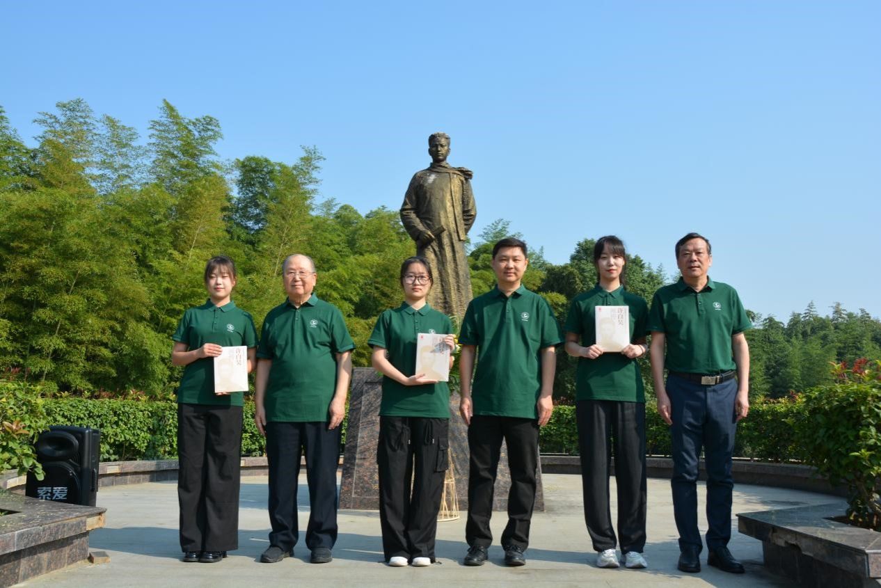 “许白昊班”学员代表谢秋迪发言道:“我们要努力学习许白昊先生用碧血丹心成就的精神伟力,转化成当下青年应对困难斗争时,挺起脊梁、冲锋在前的勇者气概,在斗争中经风雨、见世面。”接着,“许白昊班”学员陈湘允和赵瑞骅为许白昊铜像捐献花篮;董绍壬为“许白昊班”授旗;校宣传部常务副部长李晓敏,校机关党委书记、党校副校长兼党委组织部副部长郑娟和校党委学生工作部副部长龚晗为“许白昊班”指导员颁发聘书;董绍壬、严昌洪和法经学院教授、博士生导师张继才为“许白昊班”学员赠书。