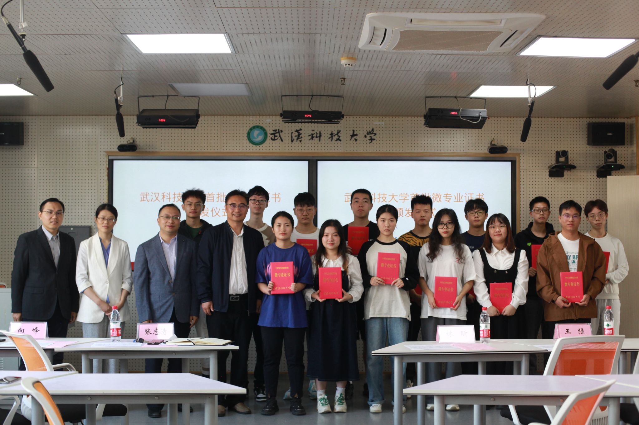 武科大网讯(通讯员朱雅慧 摄影刘靖瑶)11月1日上午,鸭脖在青山校区主楼0810会议室举行首批微专业证书颁发仪式。本科生院副院长、香涛学院院长张志清,本科生院副院长向峰,增材制造工程微专业项目负责人林昕、数字材料与冶金项目负责人王强出席仪式,微专业项目学生代表参加。仪式由向峰主持。