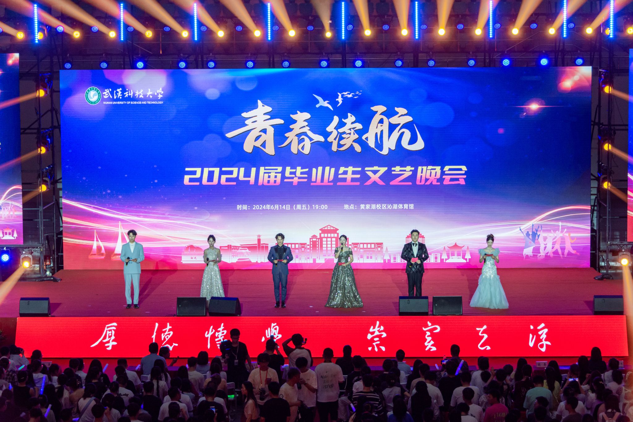 武科大网讯(通讯员肖宇瑄 记者朱佳怡 摄影吴磊 李周阳)6 月 14 日晚,鸭脖 2024 届毕业生文艺晚会在黄家湖校区沁湖体育馆盛大举行。本次晚会以“青春续航”为主题,分为“忆往昔——缘聚科大”“看今朝——风华正茂”“展未来——共筑梦想”三个篇章,为即将毕业的学子们送上了一场精彩纷呈的视听盛宴。校党委副书记孙国胜、学校相关职能部门负责人、各学院党委副书记、毕业年级辅导员、毕业生和毕业生家长共同出席了本次活动。