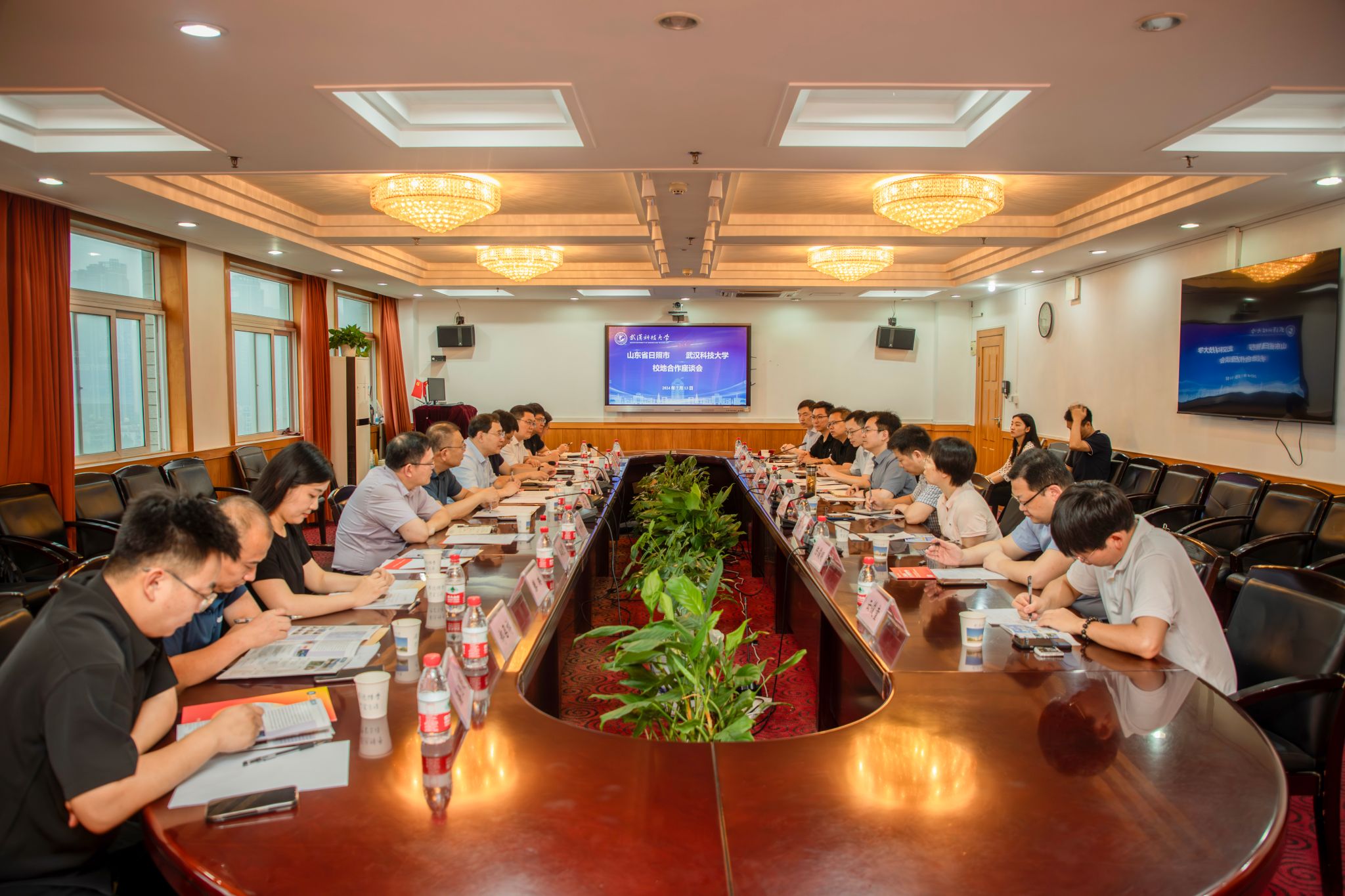 与会人员一同观看了学校宣传片和日照市城市宣传片,学校相关单位负责人和日照市政企代表围绕校地合作开展了深入交流和讨论。