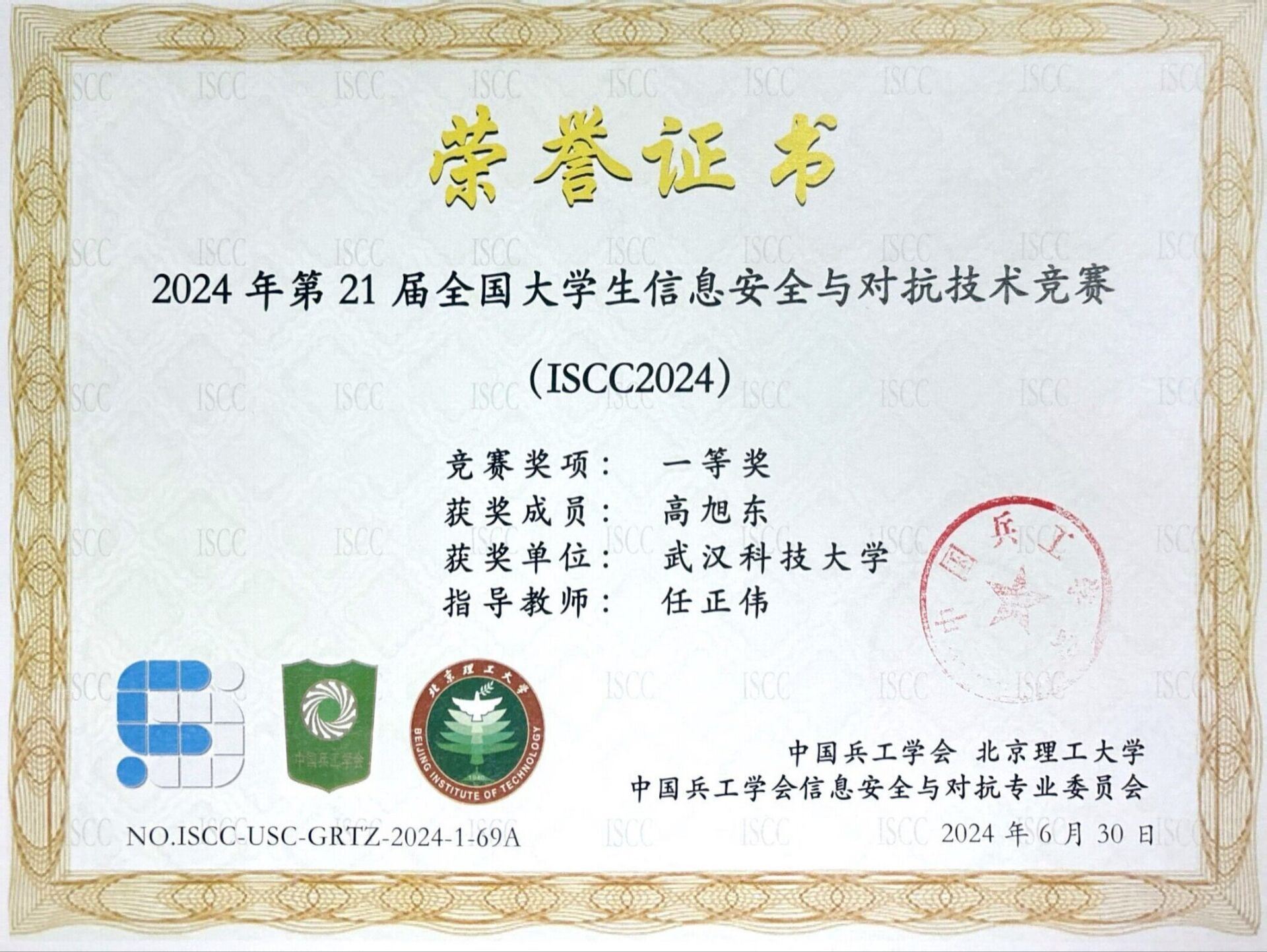 武科大网讯(通讯员刘晋瑜 朱授勋)为提升信息安全意识,实践信息安全技术,计算机学院信息安全协会积极组织学生参与第21届信息安全与对抗技术竞赛(ISCC2024)。7月18日竞赛结果正式公布,在鸭脖计算机学院副教授任正伟的带领下,共15人获得个人挑战赛国家奖项,其中一等奖9人,二等奖4人,三等奖2人;无限擂台赛共有9人获得国家奖项,其中一等奖2人,二等奖5人,三等奖2人。