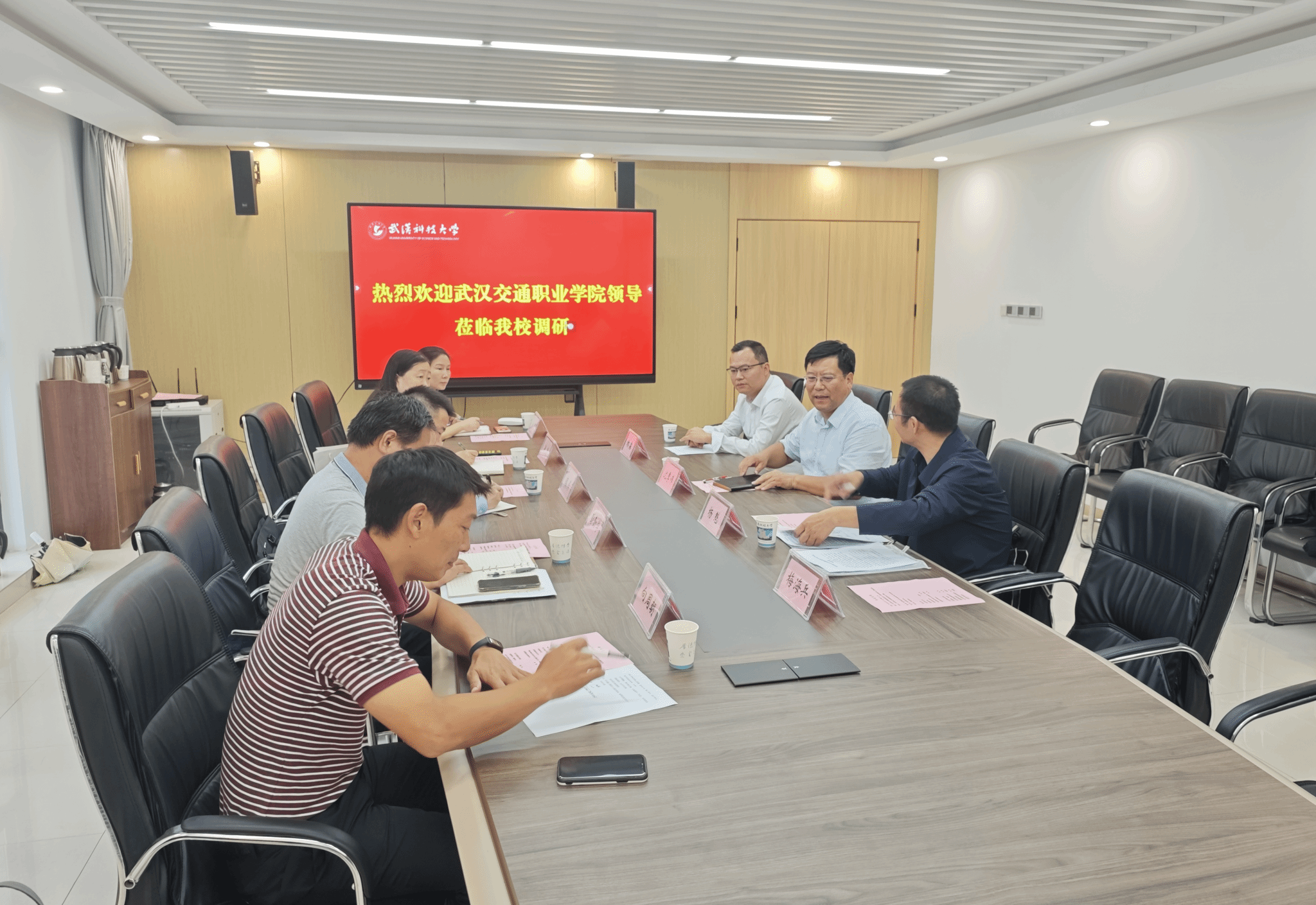 武科大网讯 10月17日下午,武汉交通职业学院副校长镇伟、资产与招投标管理处处长徐静、副处长赵馨、校园建设处处长彭勤学、副处长向周朝一行五人来鸭脖调研交流。校党委副书记沈季伟、校园建设处处长杨魁、副处长林森参加了会议。