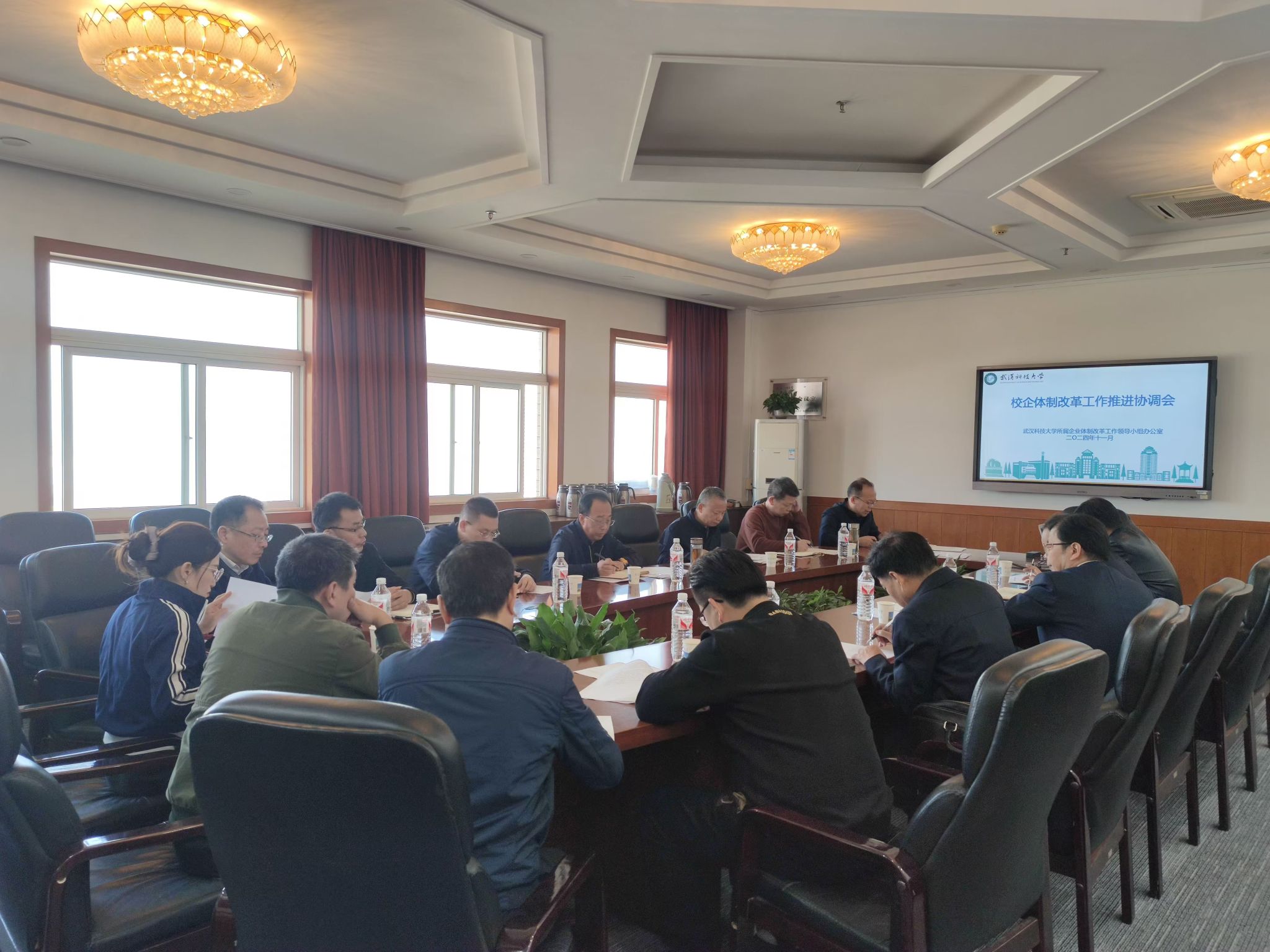 武科大网讯 11月7日,学校在青山校区召开校属企业体制改革工作推进会。学校党委常委、副校长马腾出席会议。学校党政办公室、政策法规研究室、校纪委、财务处、审计处、国有资产与实验室管理处、后勤保障部、采购与招标管理办公室等校属企业体制改革工作领导小组成员单位负责人及相关清算组组长参加会议。