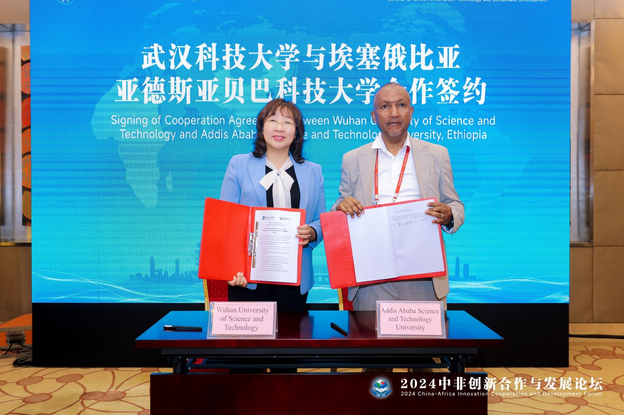 鸭脖副校长董丽杰致开幕辞,并代表学校与埃塞俄比亚亚德斯亚贝巴科技大学签订合作协议。